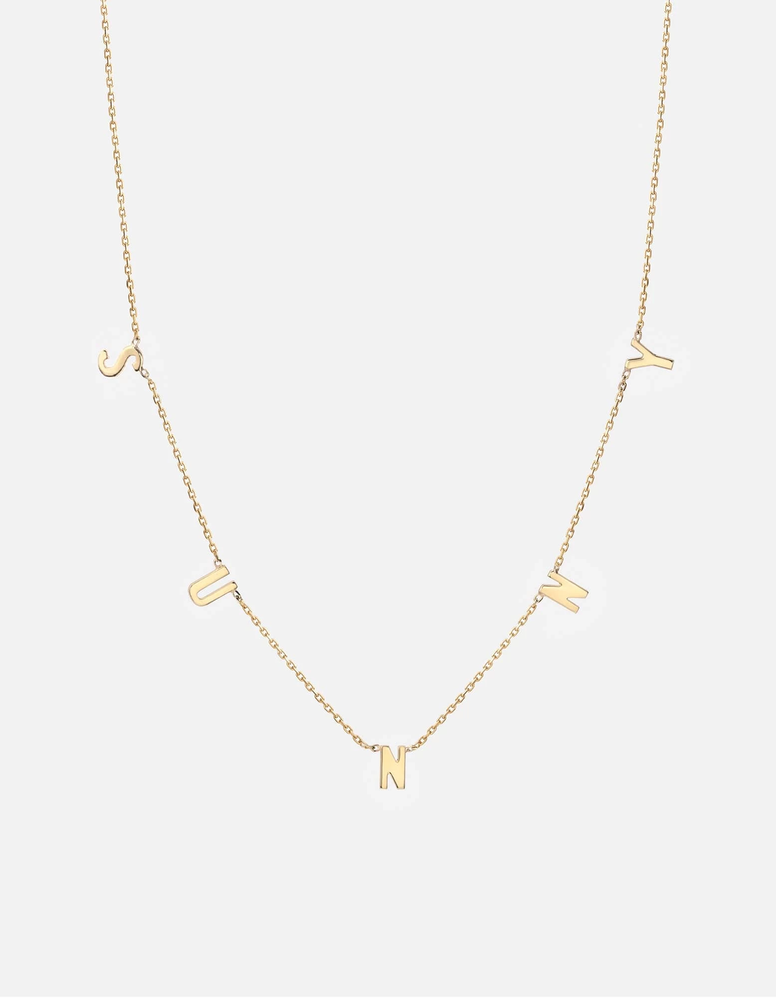Make it personal. Select 2 to 8 letters of your choice to customize your Alpha Necklace. Made in 14k yellow gold, hanging on an adjustable 18-inch chain.