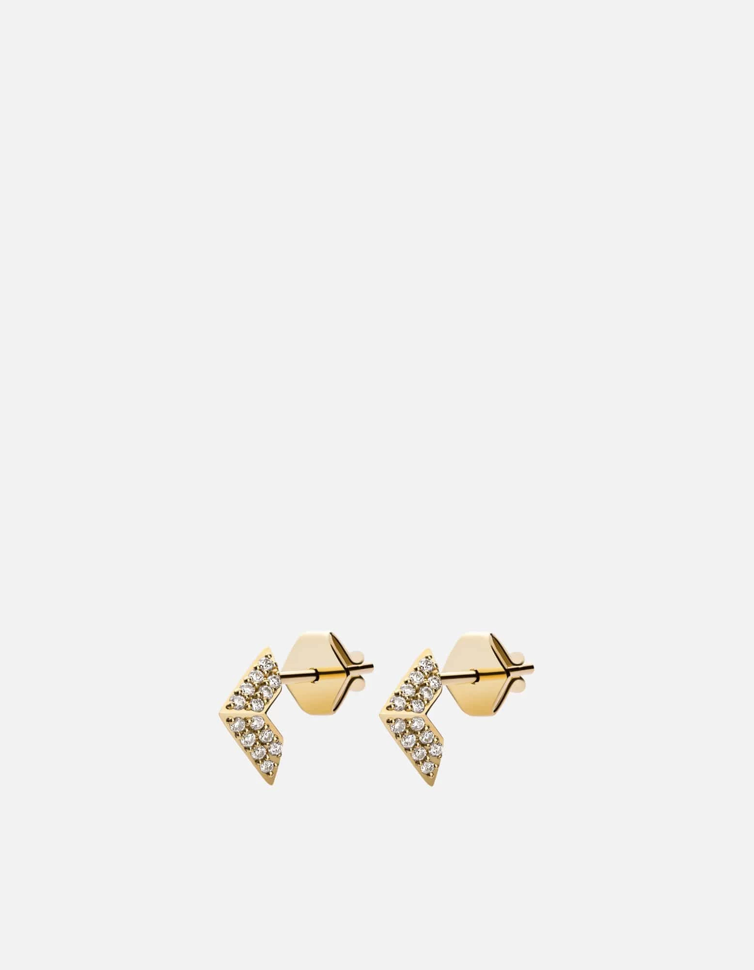 Clean lines and graphic angles bring together the natural ease of our Mini-Angular studs for women. Meticulously crafted in polished 14k yellow gold, enhanced with conflict free ethically sourced diamonds.
