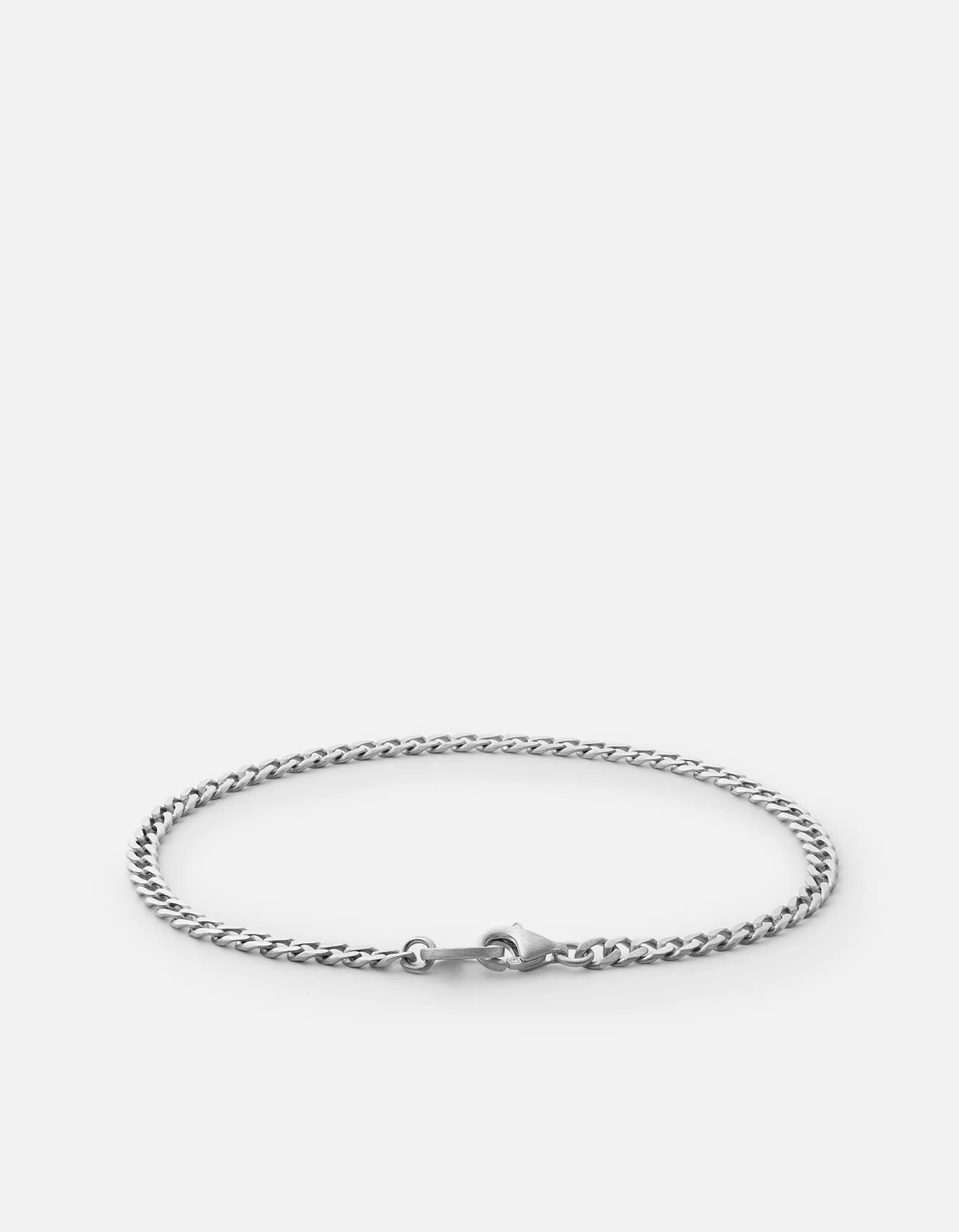 The 3mm Annex Cuban Chain Bracelet for men is made using matte sterling silver Cuban links fastened to a hardware inspired lobster clasp closure.