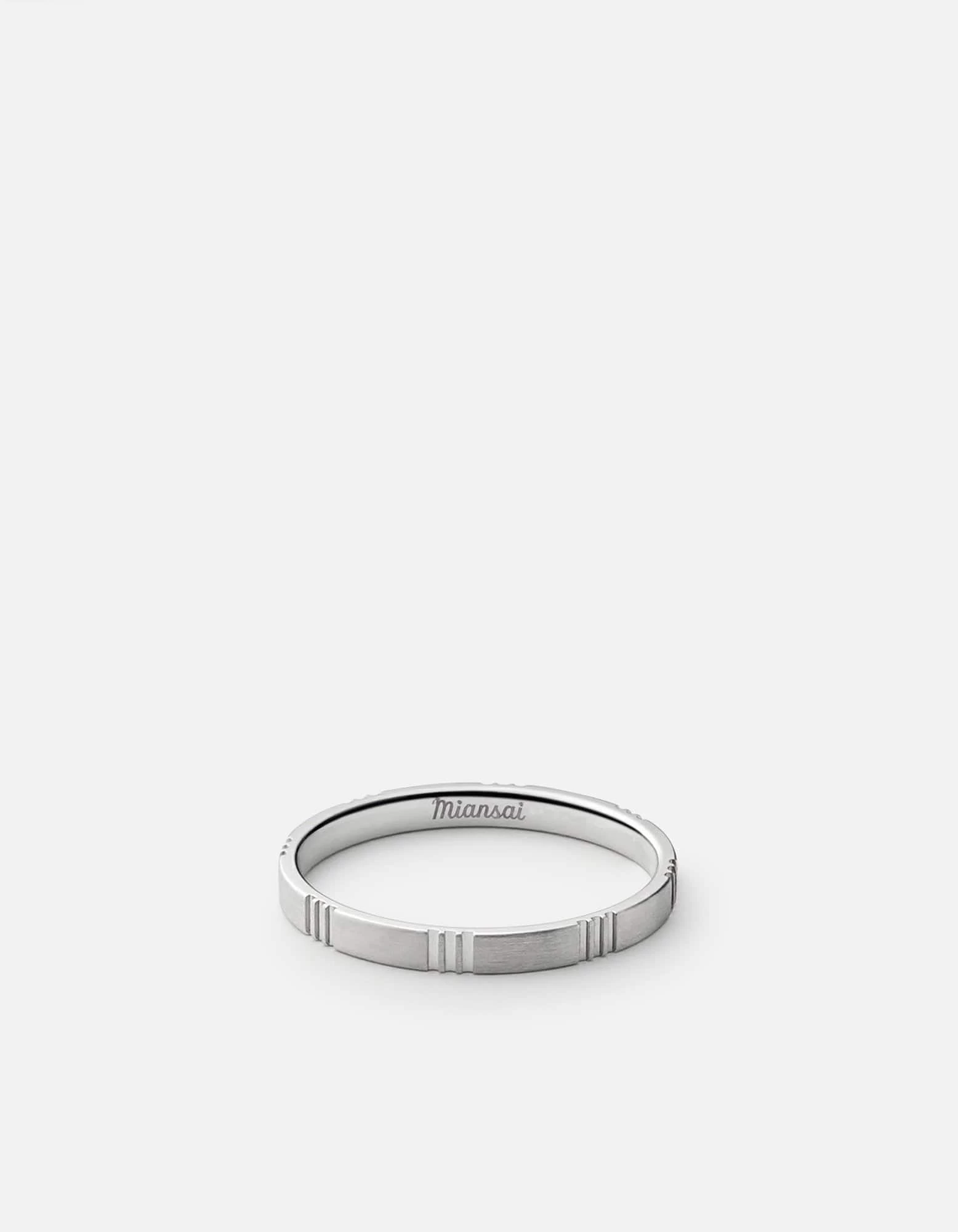 The linear pattern engraved on our Bolt Ring for men is reminiscent of the ridged style popularized in the 1970s. This lightweight, vintage inspired band works well alone or mixed with others. Made in matte sterling silver.