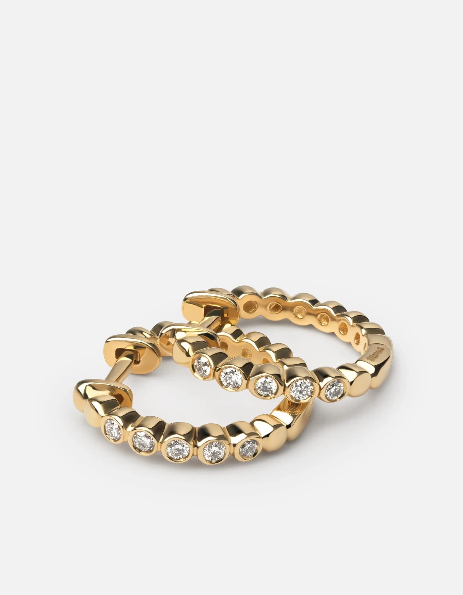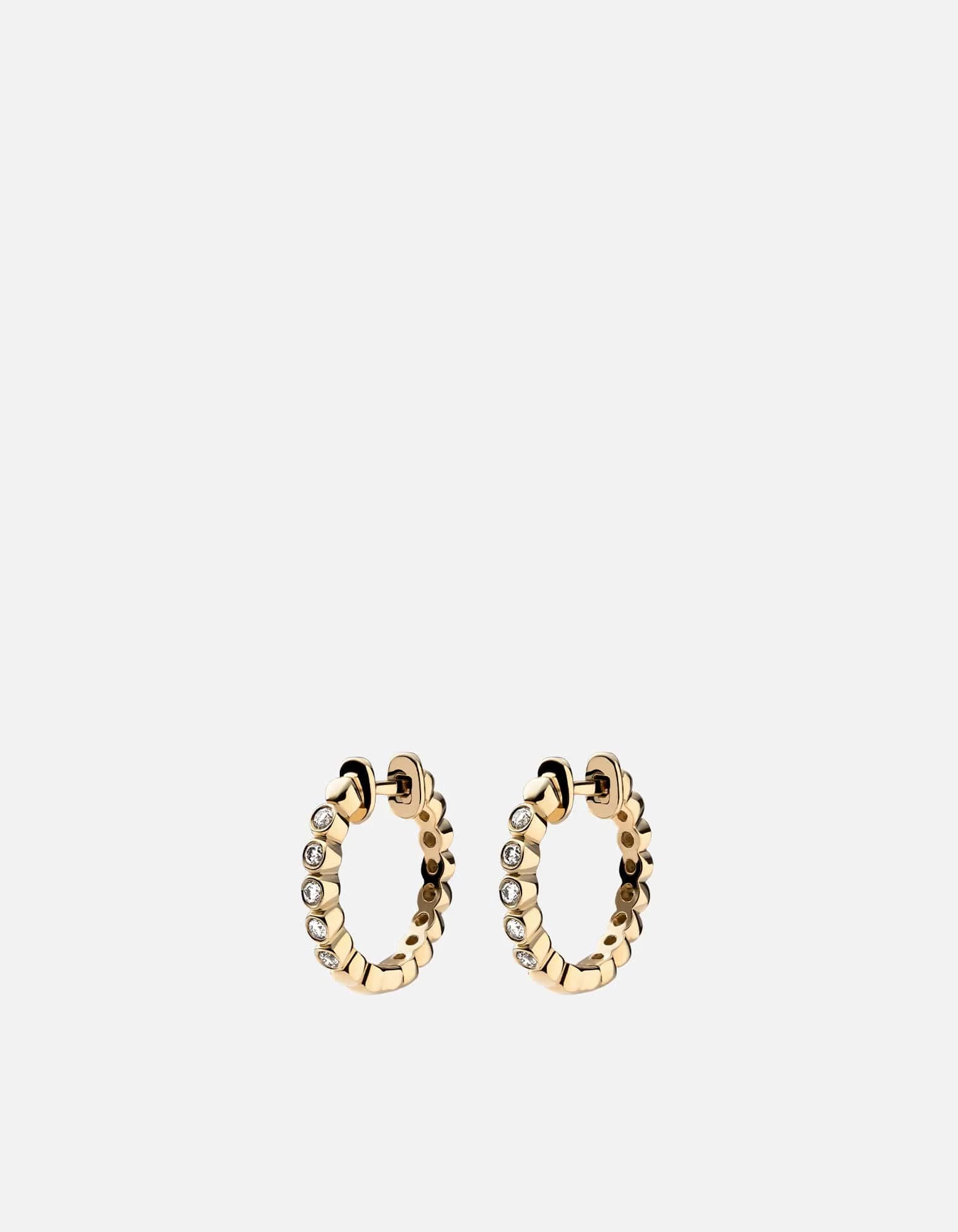 The Cleo Pave Huggie Earrings are casted from 14k yellow gold and detailed with ethically sourced bezel set diamonds. These women’s earrings promise to be your next everyday pair.
