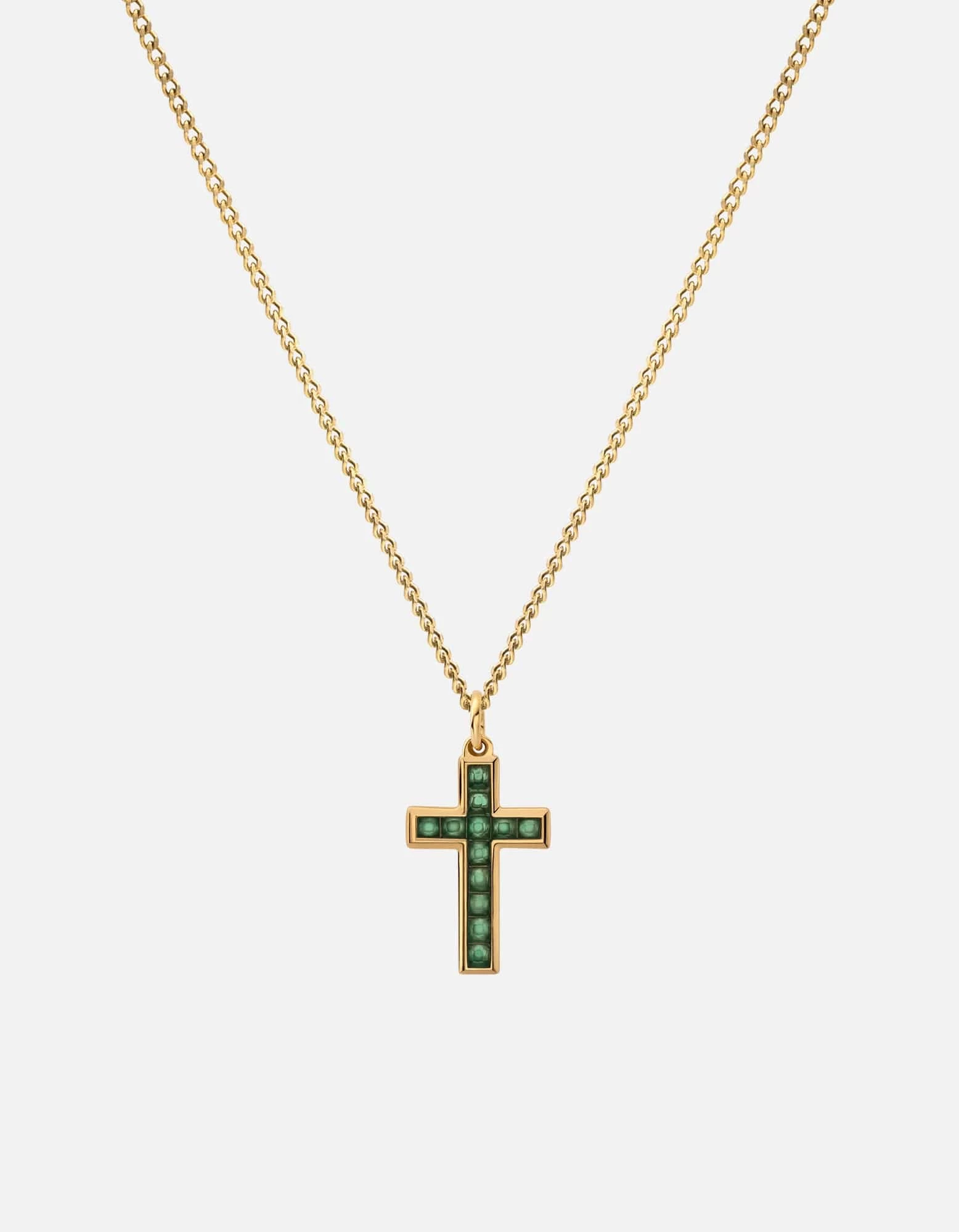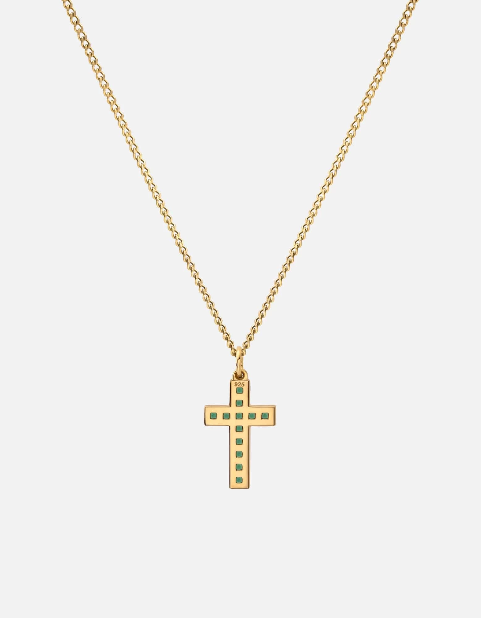Have faith in the Cross Agate Pendant Necklace. This handcrafted gold vermeil cross pendant adds a simple pop of color to an outfit, thanks to the green agate stones that shine against both axis. In minimalism we trust.