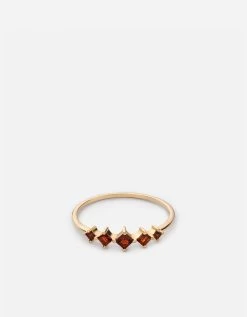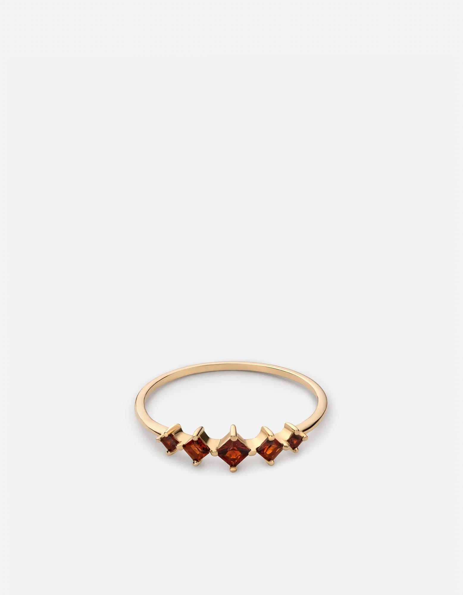 The women’s Echo Ring, with its five stones, is a graceful reminder that unconditional love awaits. Long considered a symbol of sincerity, the garnet is highlighted here against a 14k yellow gold band. Expertly crafted by our artisans, the five diamond-shaped garnet stones feature sizes that crescendo to the center.