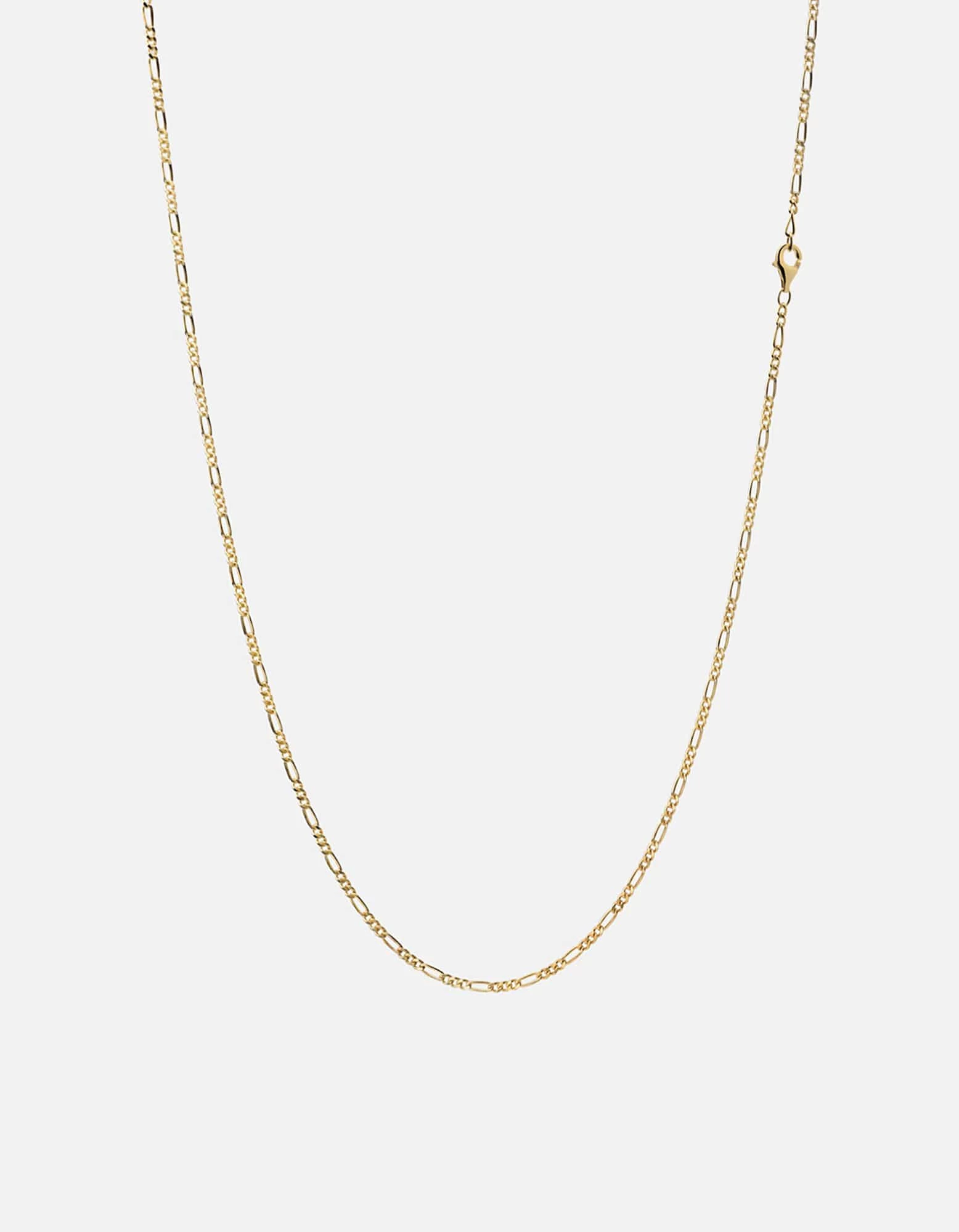 The men’s Figaro Chain Necklace features Italian influenced flat-lay links thoughtfully assembled for a streamlined design. This staple piece adds a nostalgic touch to your everyday look. Made with a 24-inch gold vermeil chain.