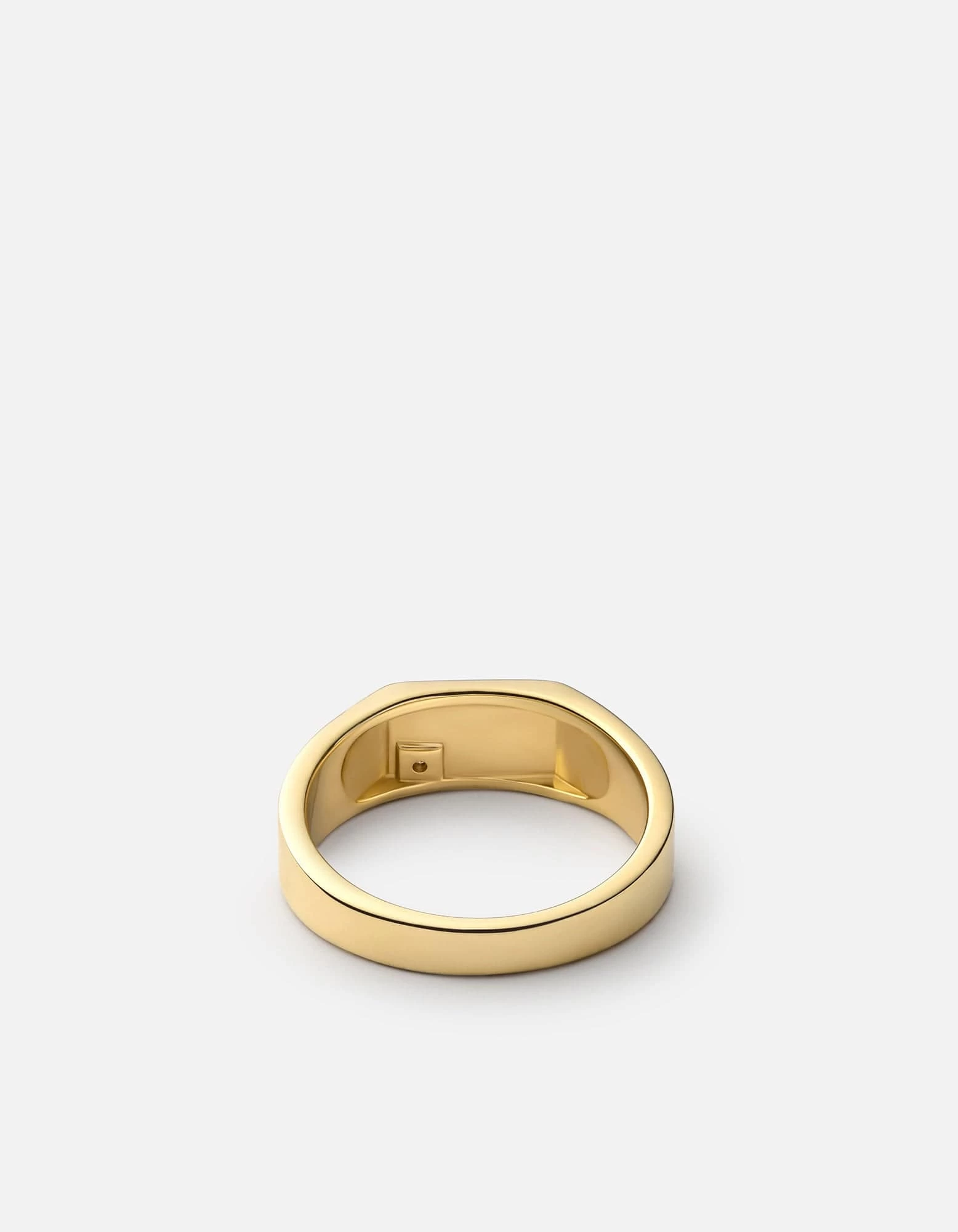 Our Geo Signet Diamond Ring is an exploration of the endless shapes around us. We reworked the classic circular signet style through the use of a three dimensional shape, the rectangular prism. This sleek, low-key design was made with the modern minimalist in mind. Available in gold vermeil or 14k yellow gold, enhanced with a diamond. Our diamonds are conflict free ethically sourced.