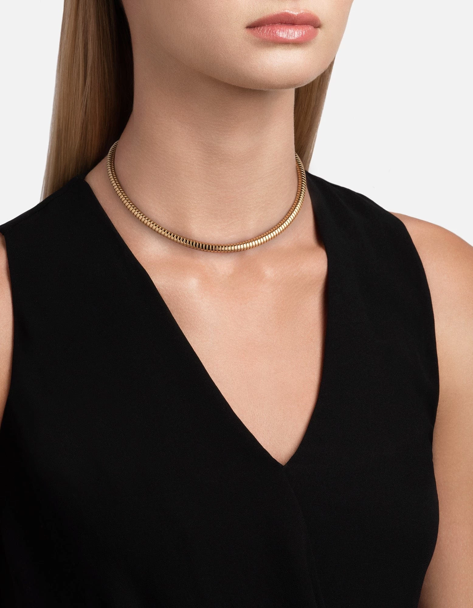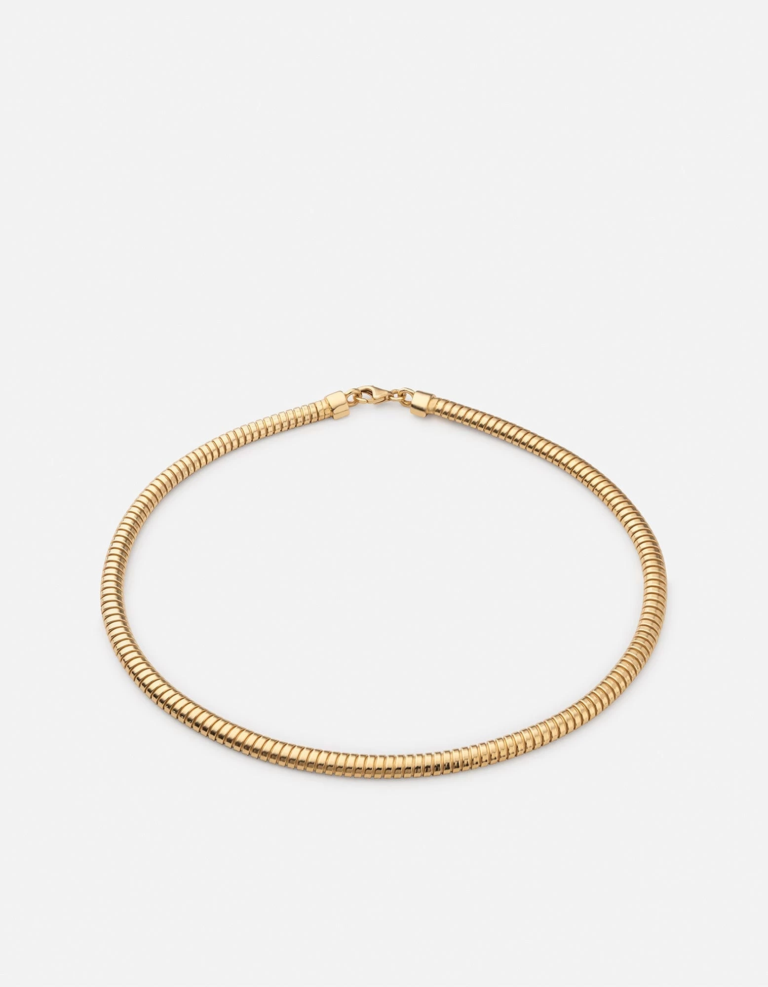 Constructed from a tightly coiled gold vermeil strand, the Hana Choker is a bold statement piece that takes inspiration from ancient Egyptian jewelry. Renowned as much for its polished appearance as it is for its fluid sense of movement, the Hana Choker is meant to sit on the collarbone and draw attention to the décolleté.