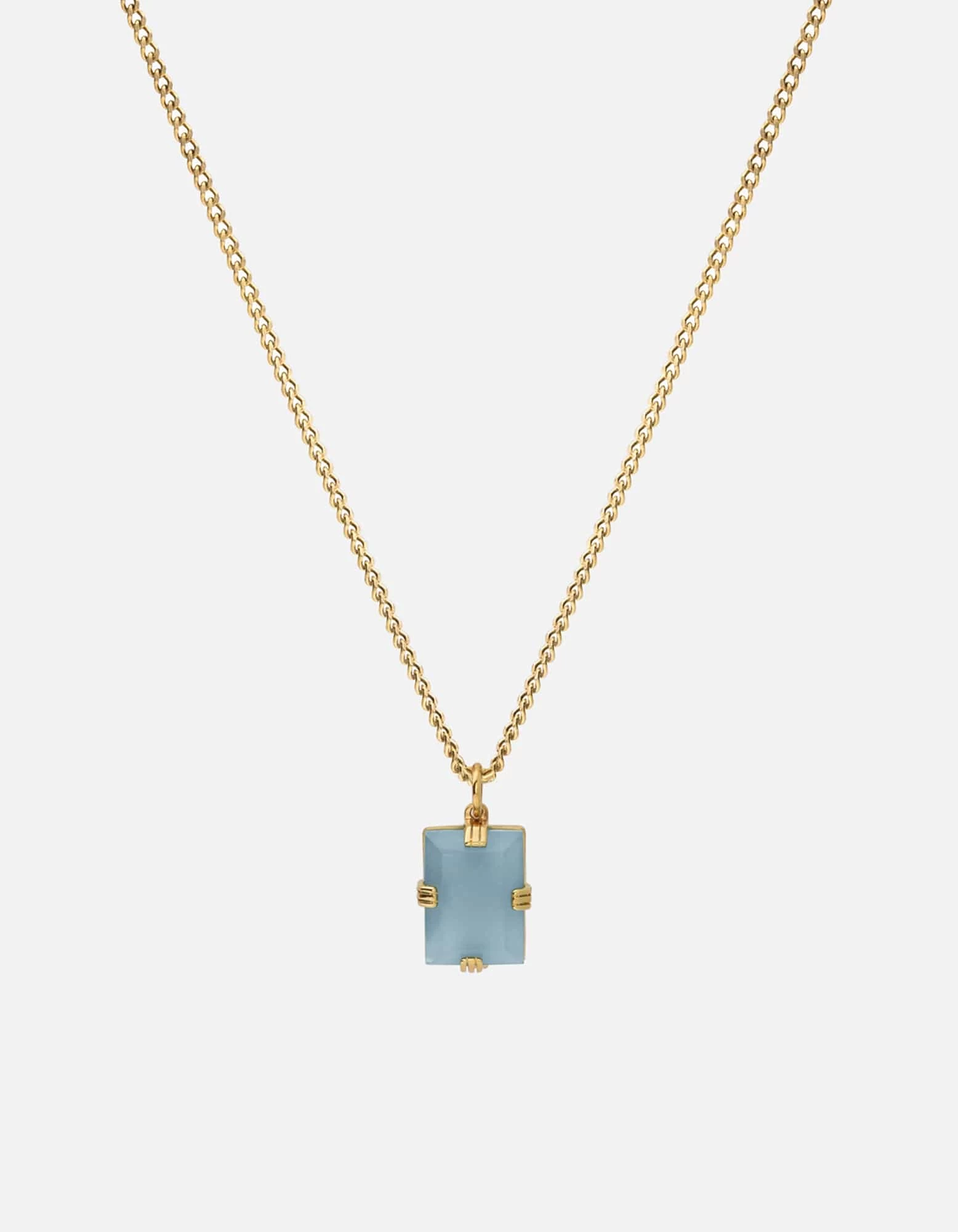 Our Lennox Pendant Necklace blends modernized materials with vintage inspired design. Blue agate is set inside a square gold vermeil frame and hangs on a 24-inch chain. Available for men and women.