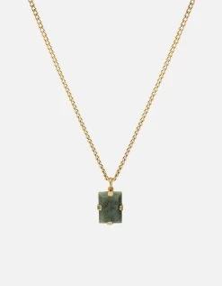 Our Lennox Pendant Necklace blends modernized materials with vintage inspired design. Green jasper is set inside a square gold vermeil or 14k gold frame and hangs on a 24-inch chain. Available for men and women.