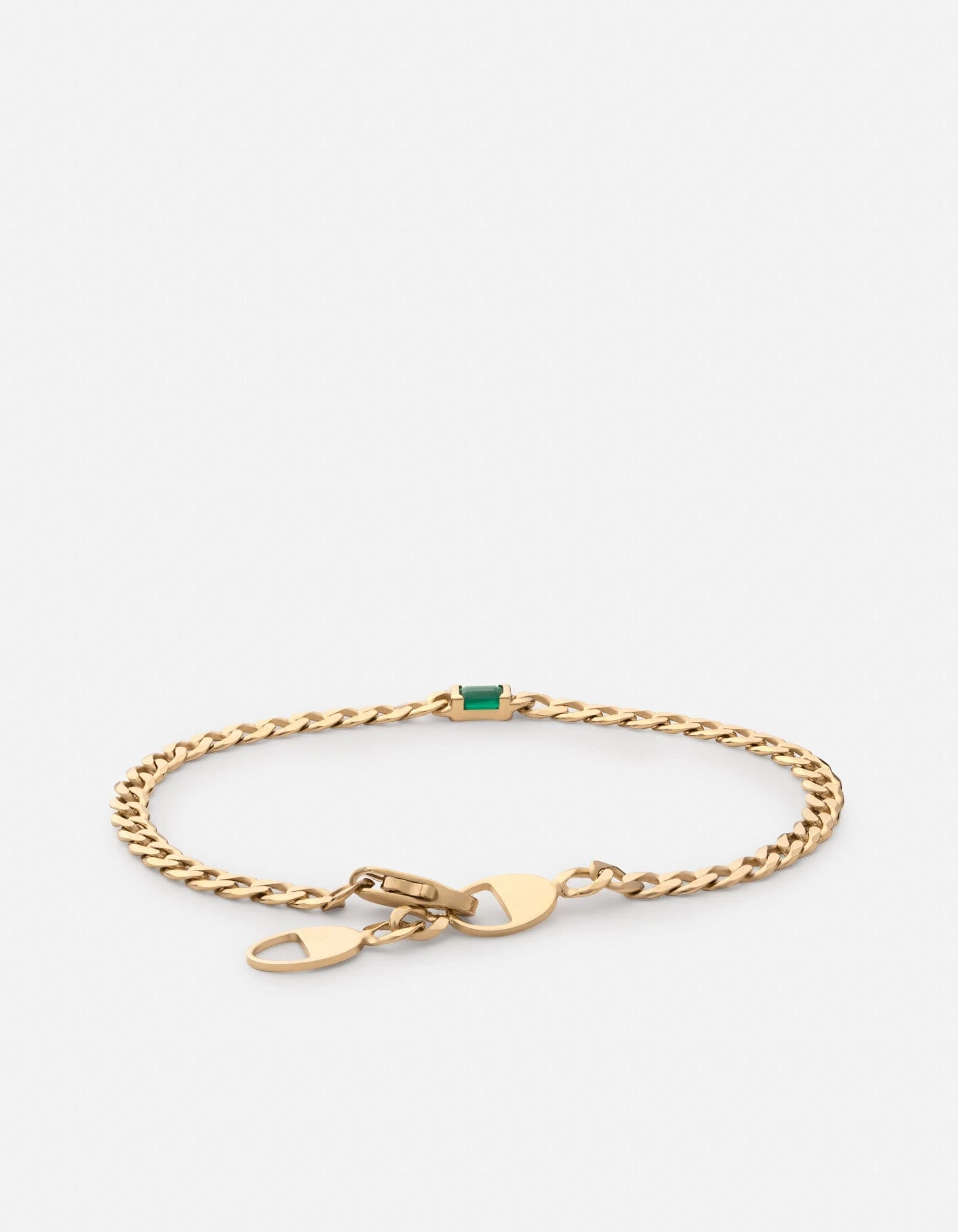 If it’s edgy you want, then you have it with our Lyra Chain Bracelet. Featuring a single green chalcedony baguette at the center of a gold vermeil frame, the bracelet is finished with a Cuban chain for a cool nod to the 1970s.