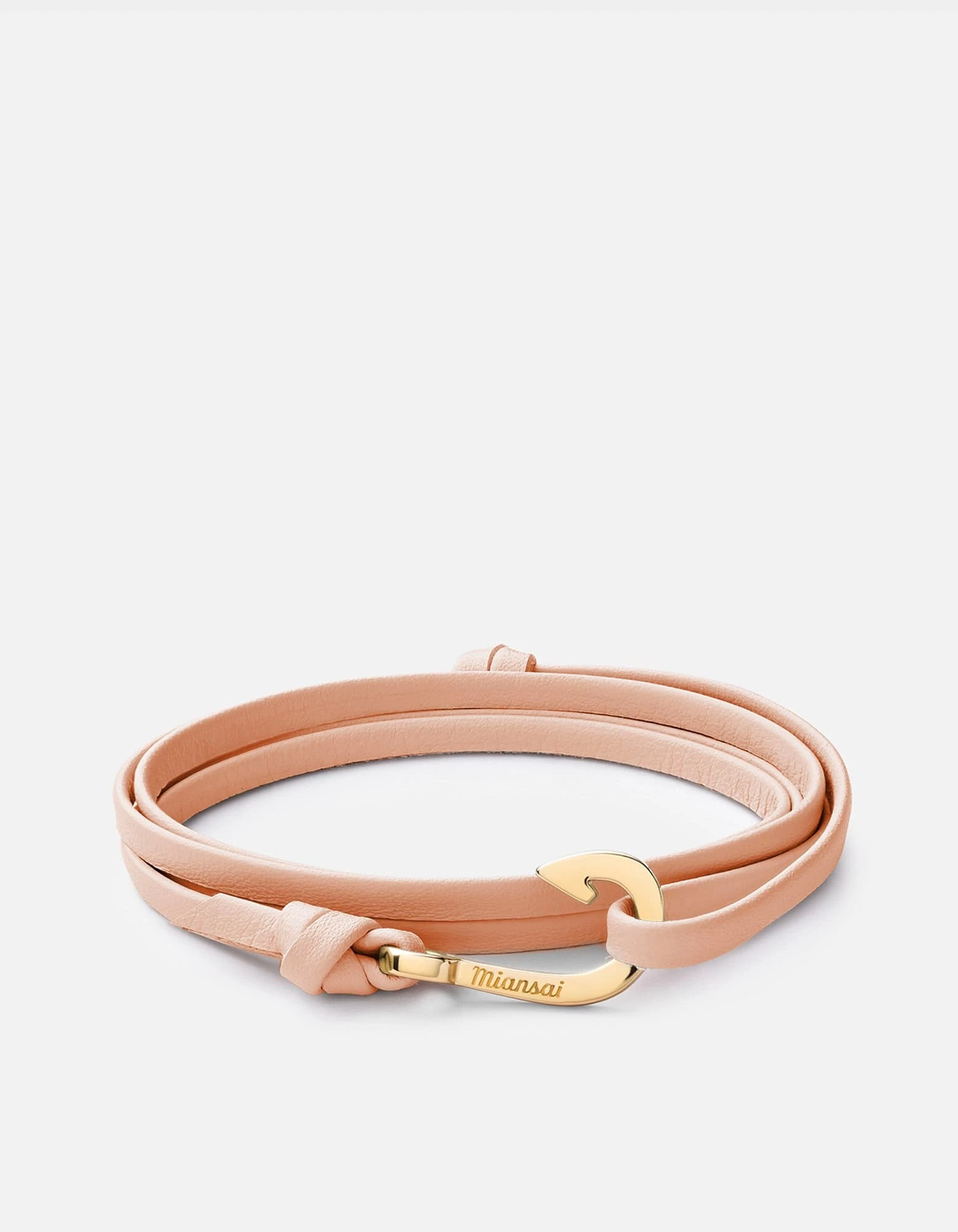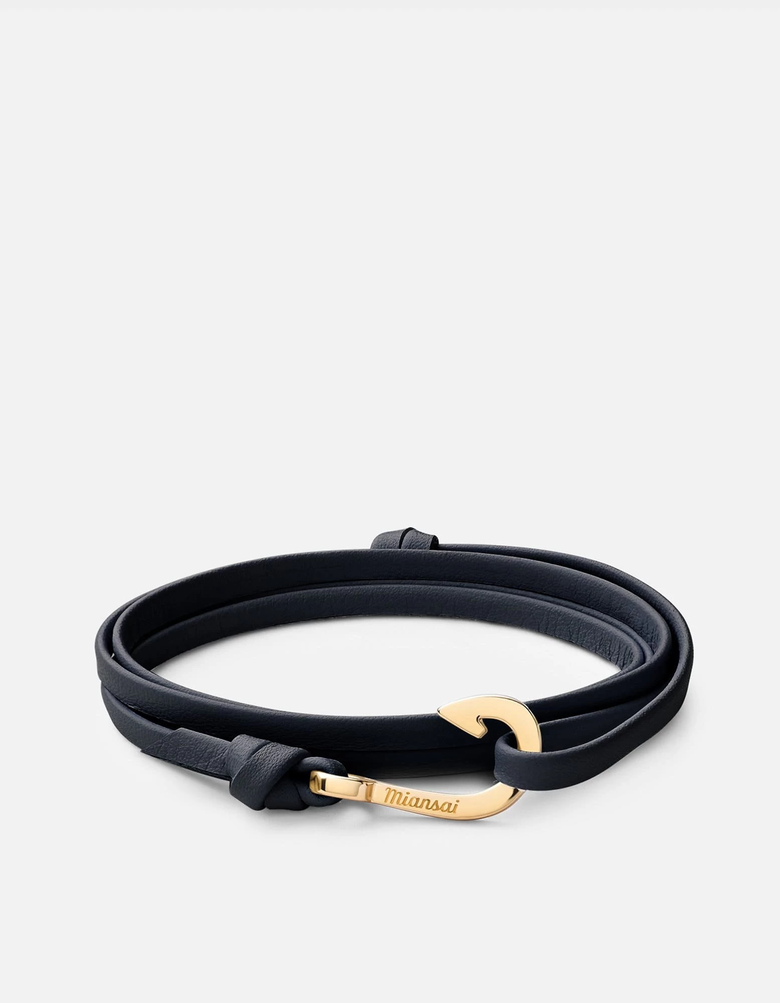 The classic mini bracelet is made to impress impeccable detail to any occasion. Made with the iconic Miansai gold plated or 14 karat gold hook finish on genuine cowhide leather, it’s secured to elevate your signature look. Available for men and women.