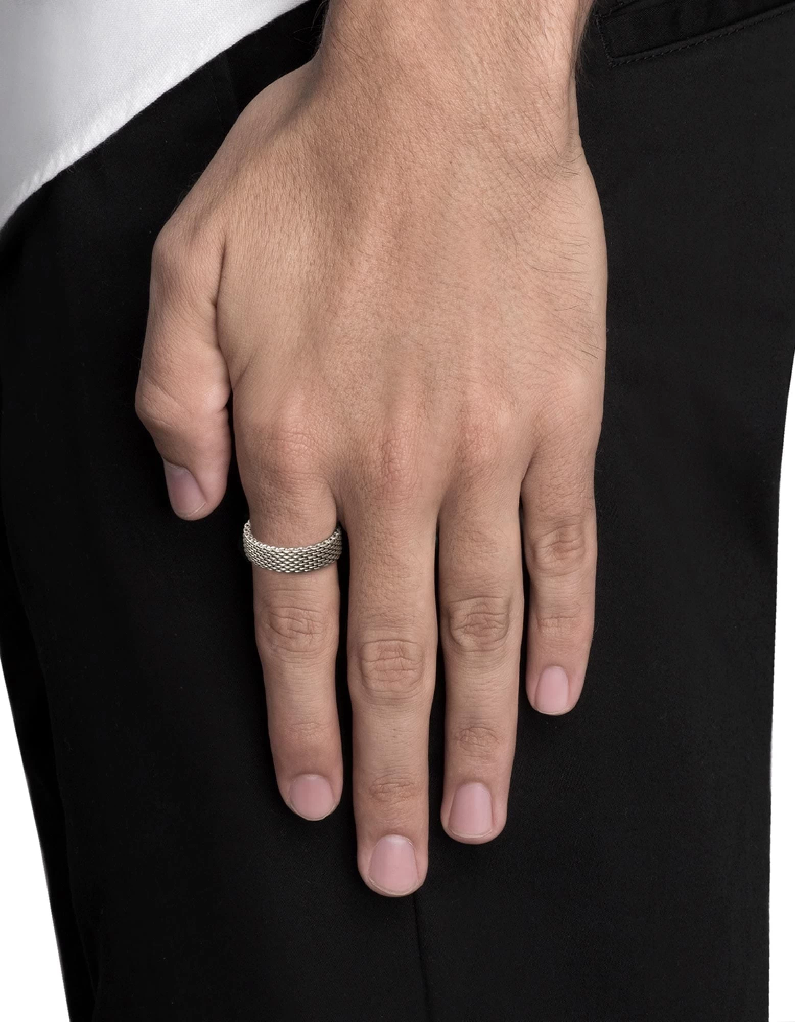 Distinctive design brings out the best in every season with our Moore Mesh Ring for men in matte sterling silver.