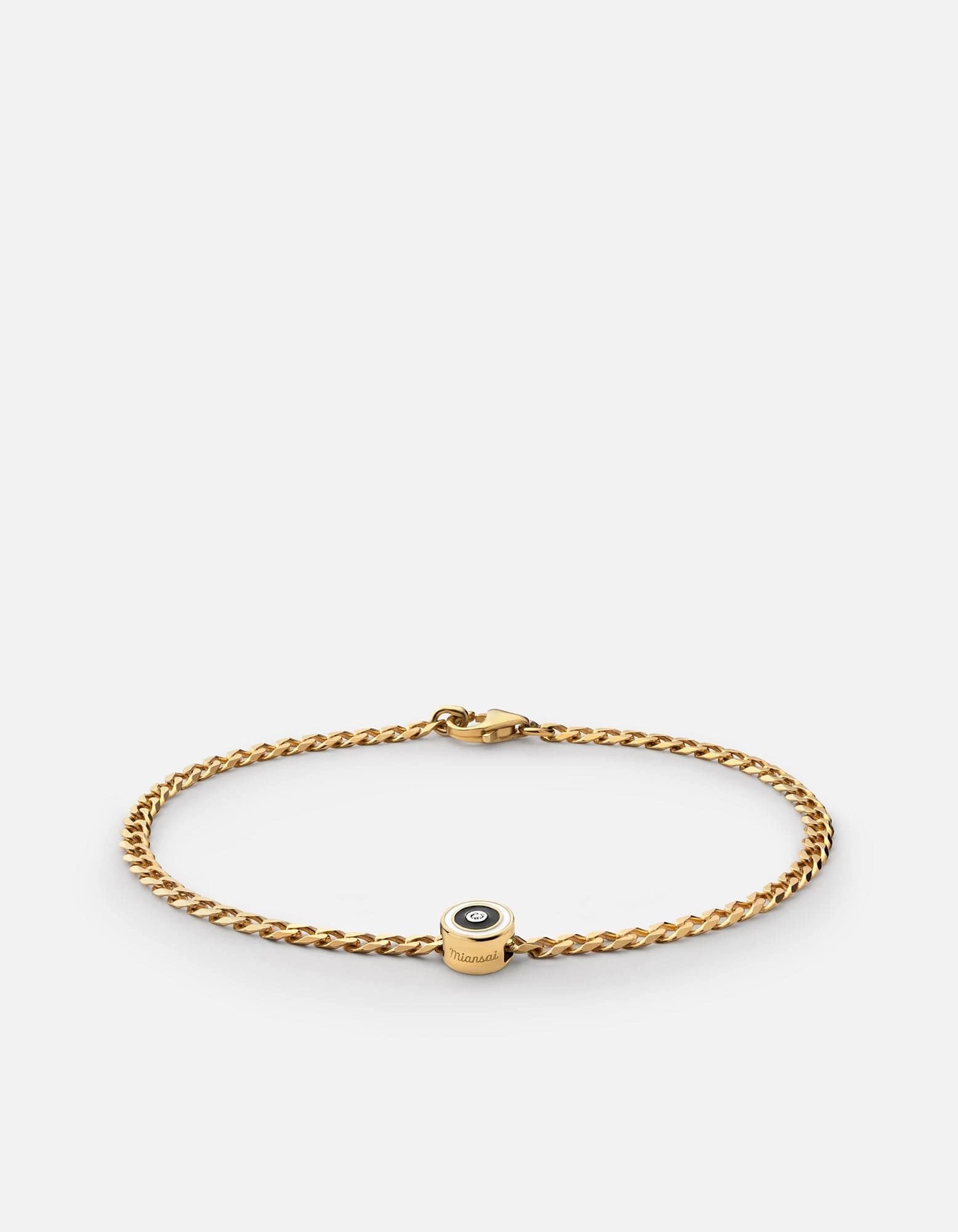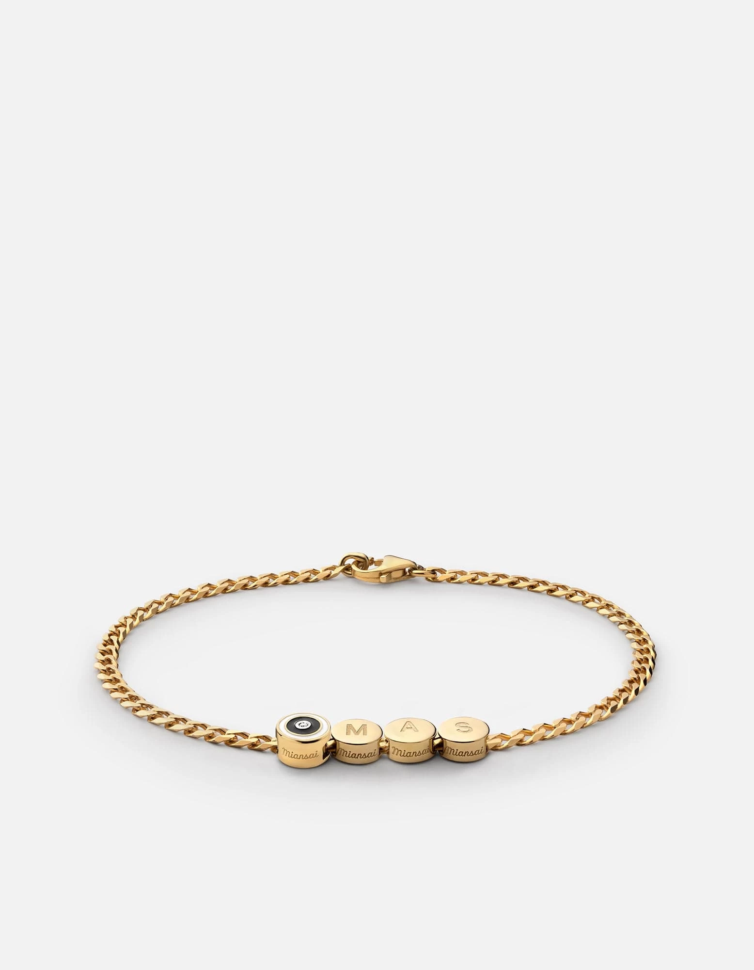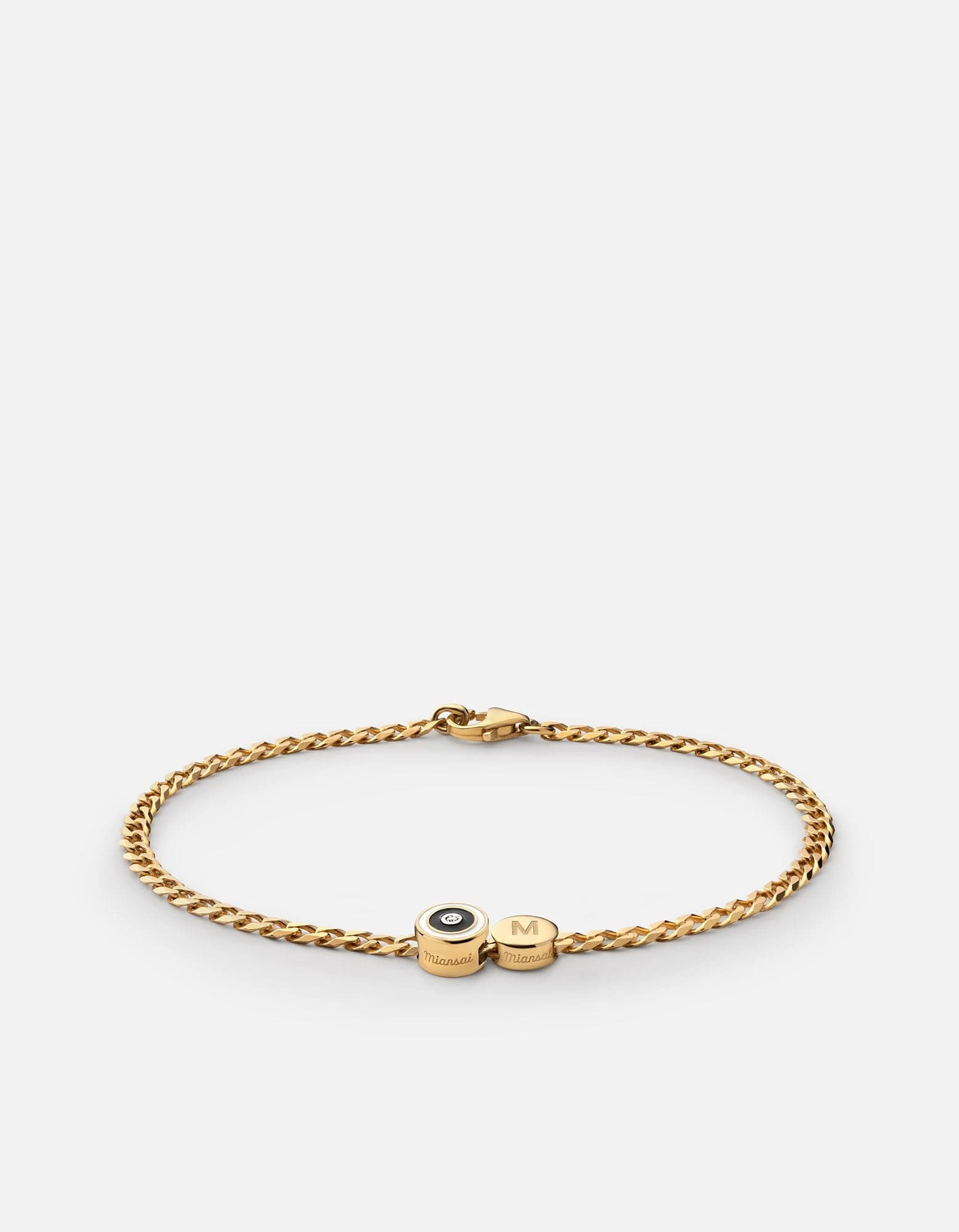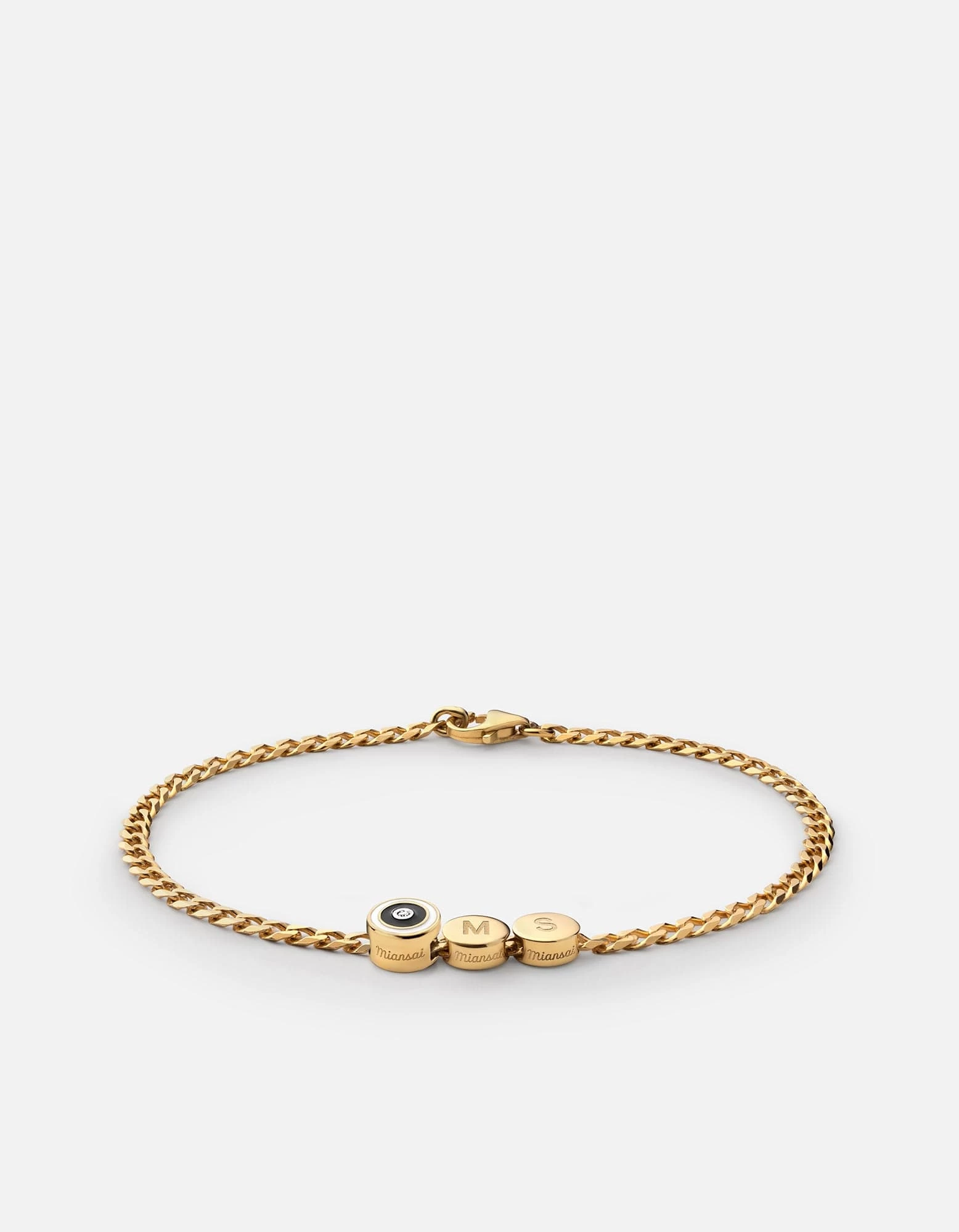 Meet the Opus Sapphire Type Chain Bracelet, a piece that’s sure to become part of your everyday look. Our signature Type Chain Bracelet, a curb chain in gold vermeil with flat edges, is enhanced with a black enamel disc that features a single sapphire stone at its center. Add an extra dose of individuality by opting for a customizable letter, number and symbol beading.