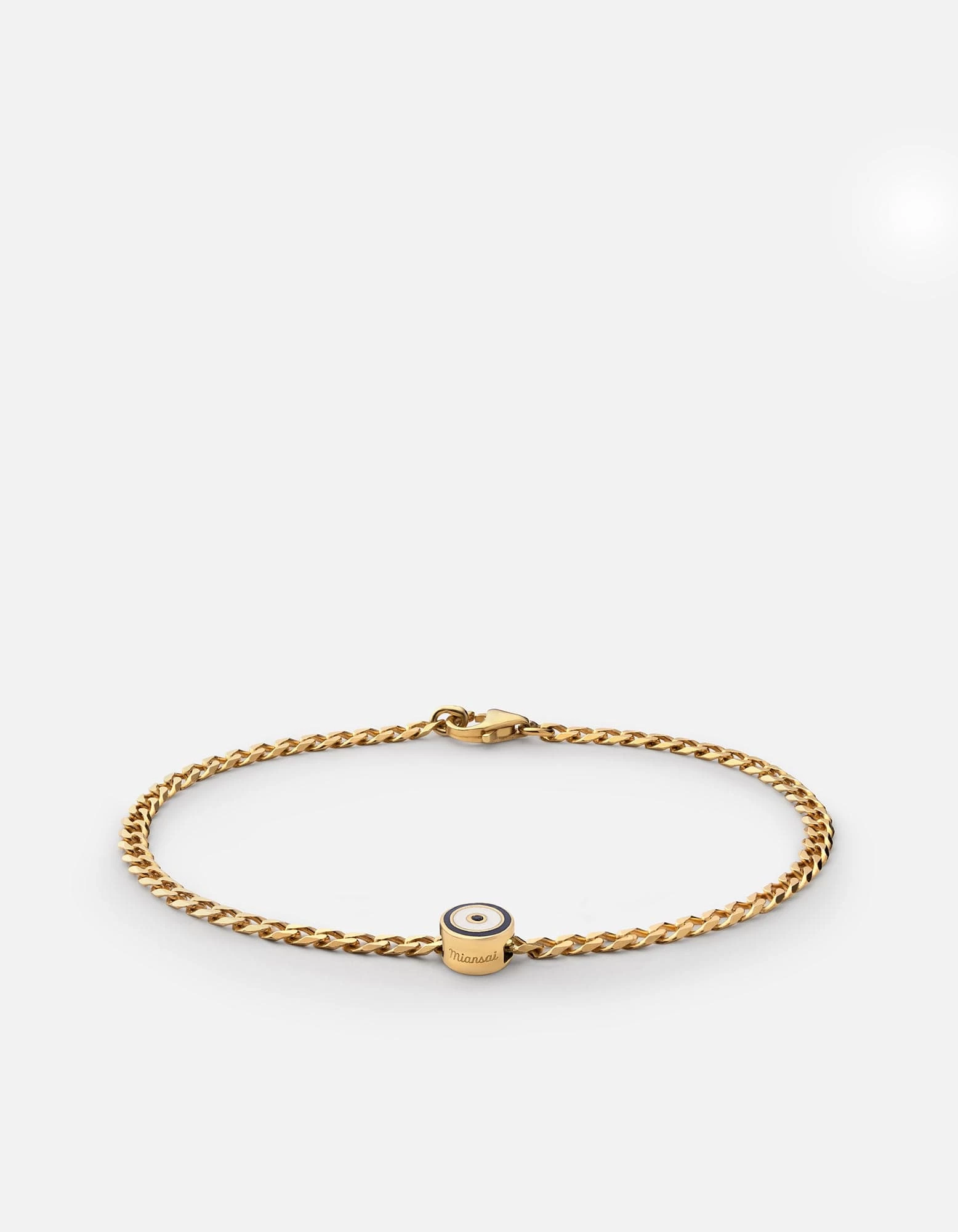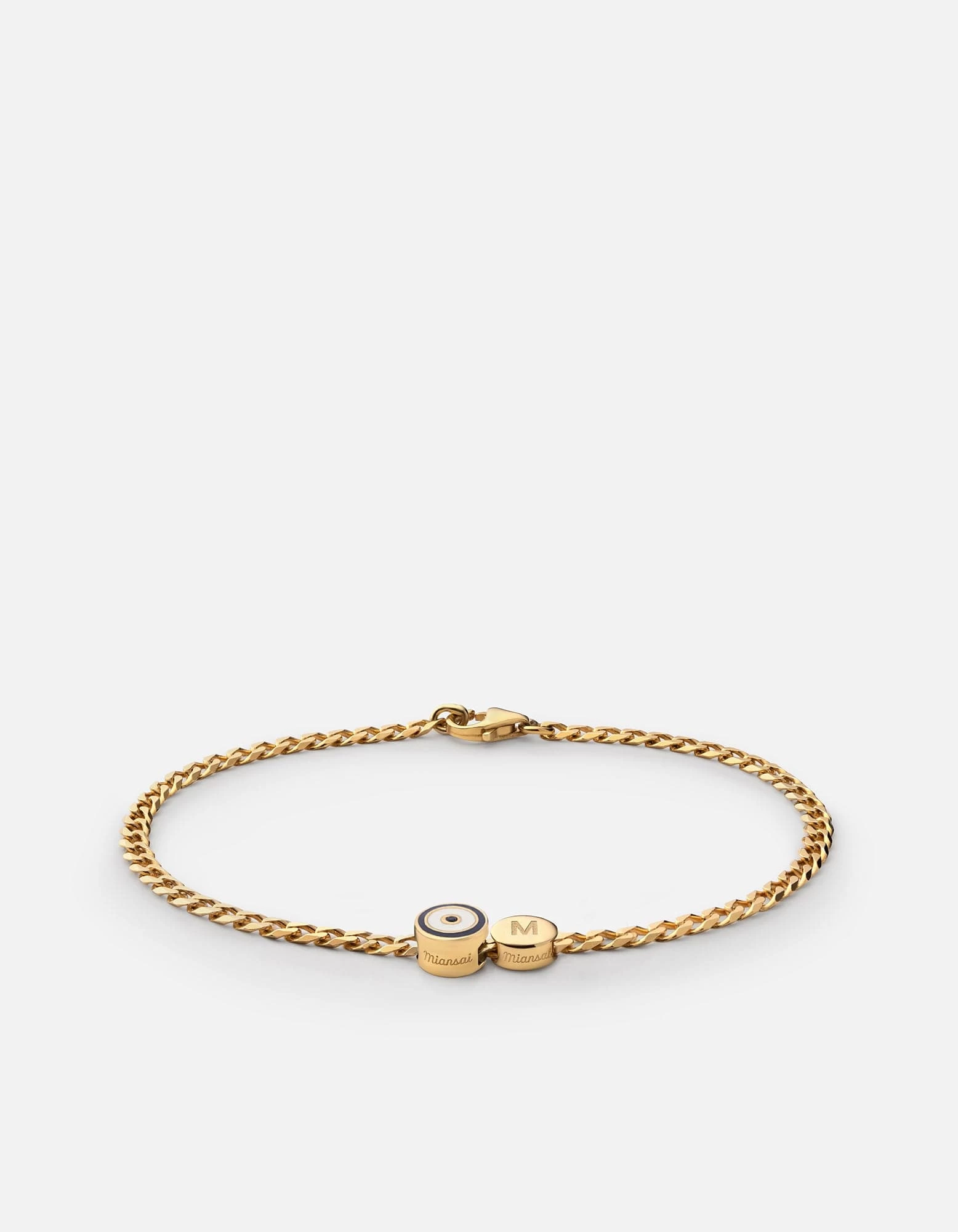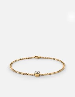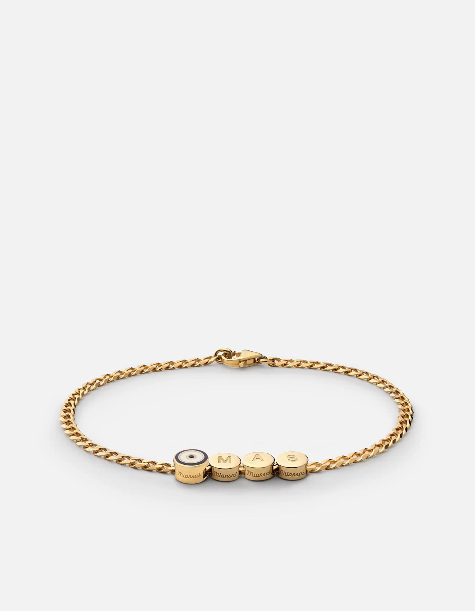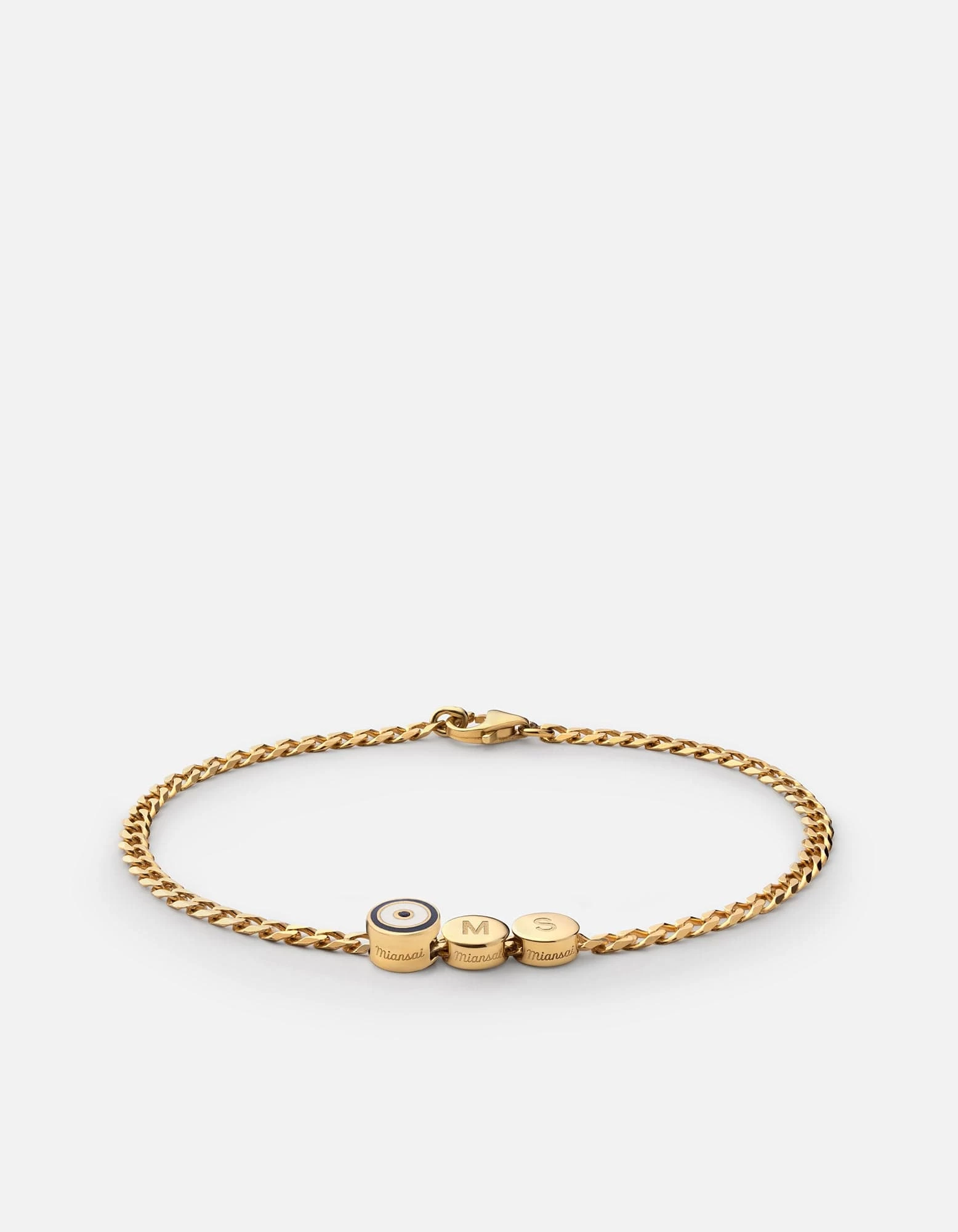 Meet the Opus Sapphire Type Chain Bracelet, a piece that’s sure to become part of your everyday look. Our signature Type Chain Bracelet, a curb chain in gold vermeil with flat edges, is enhanced with a blue enamel disc that features a single sapphire stone at its center. Add an extra dose of individuality by opting for a customizable letter, number and symbol beading.