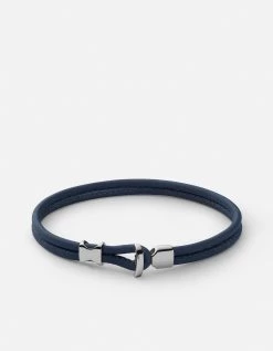 The hardware inspired men’s Orson Loop Leather Bracelet features a hand-casted sterling silver flat bead strung onto genuine Italian leather and features a curved toggle clasp closure.