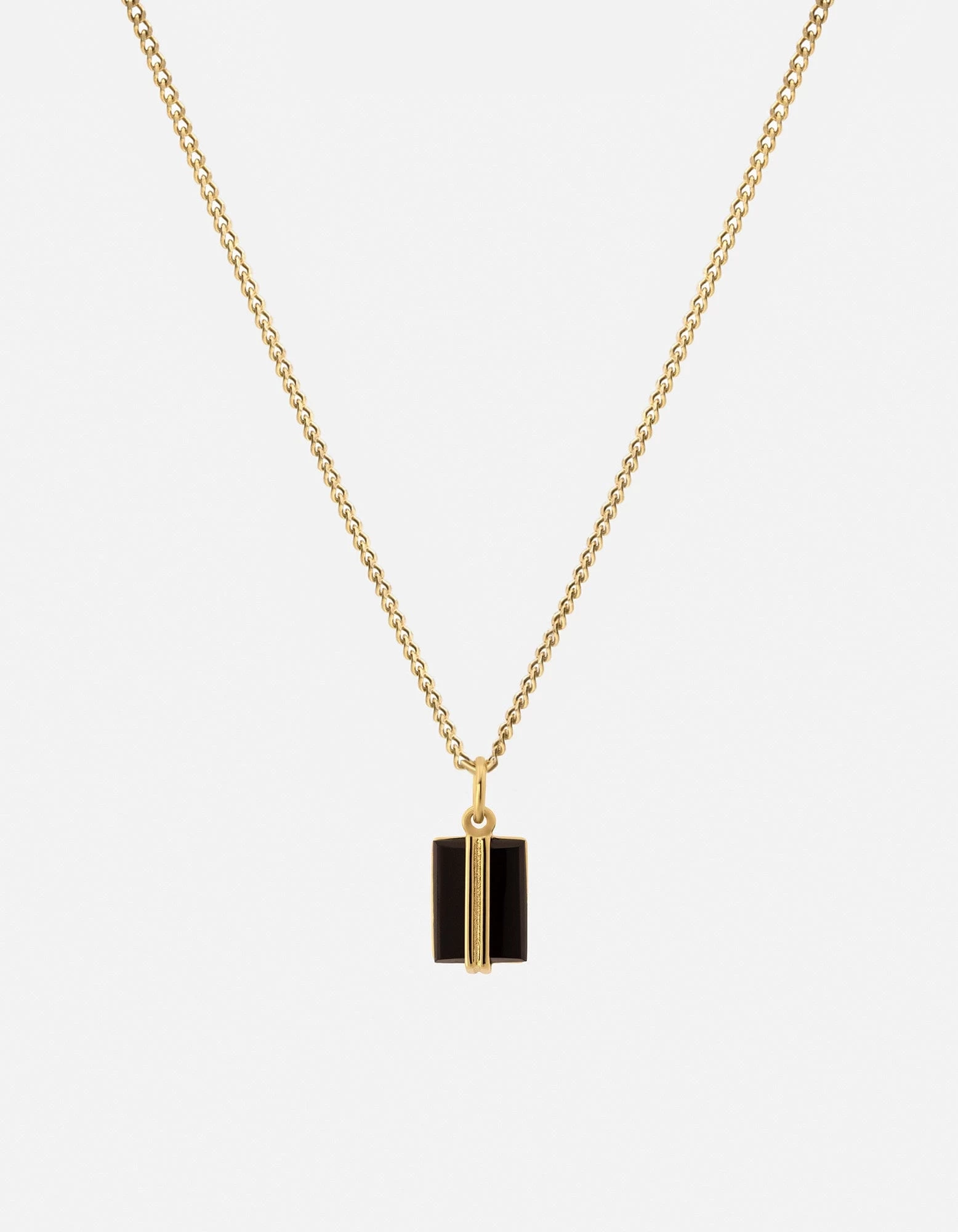 Minimal and edgy. The Paolo Pendant features a rectangular black onyx stone that’s wrapped by a thin band of polished gold vermeil and finished with clean corners for a modern touch. Known as a protective stone, this black onyx pendant hangs on a 21-inch chain.