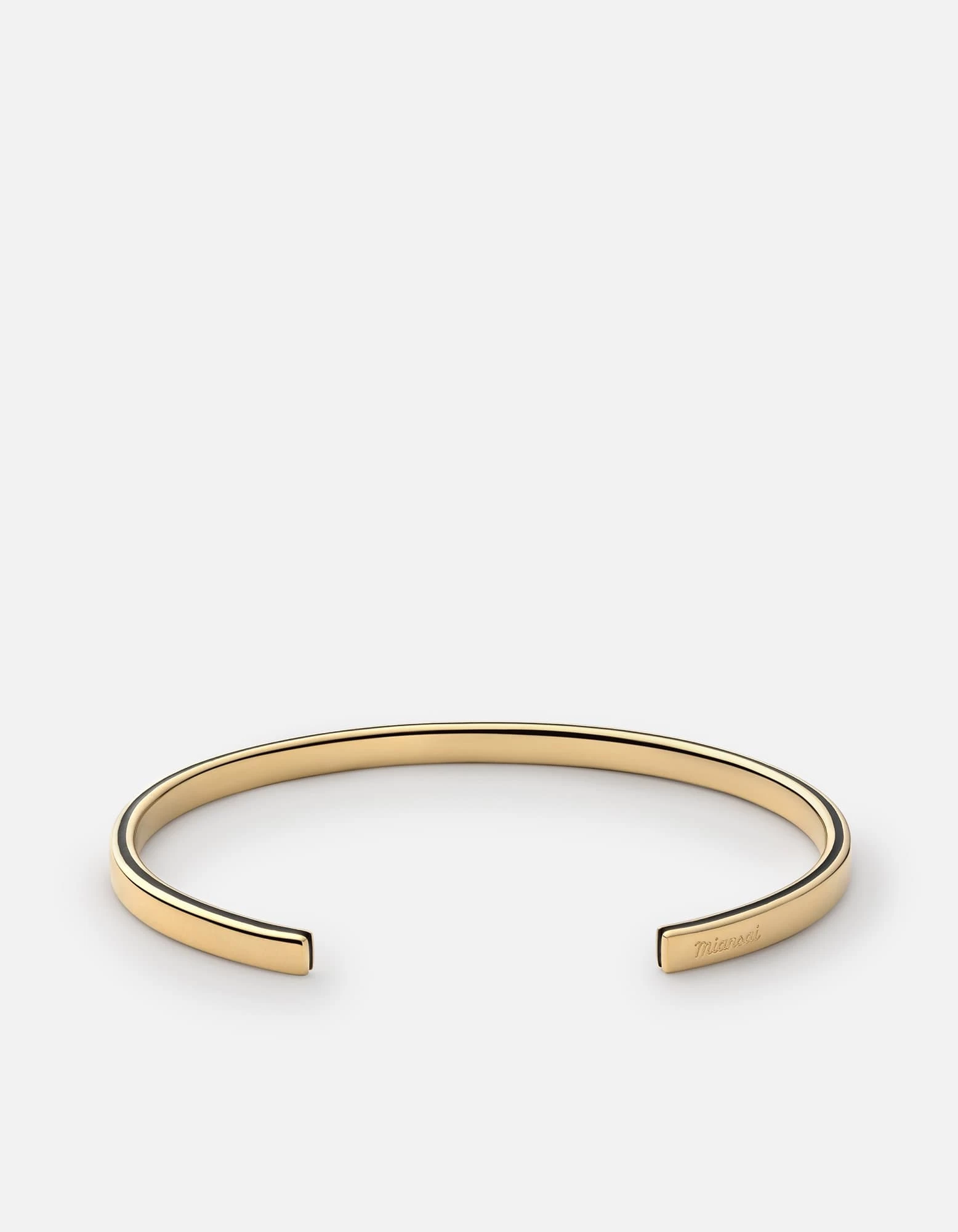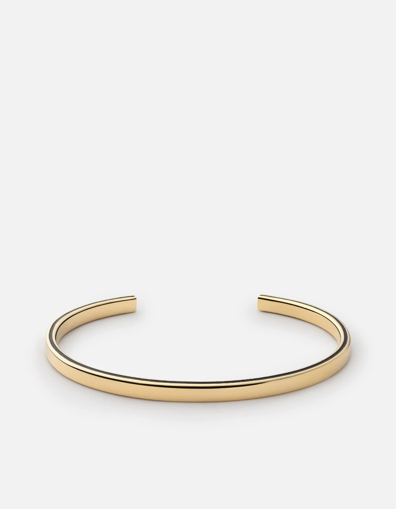 Our Ridge Cuff for men features a slim silhouette with a minimal design detail of enameling along the center. Made in polished gold plated. Also available in polished silver.