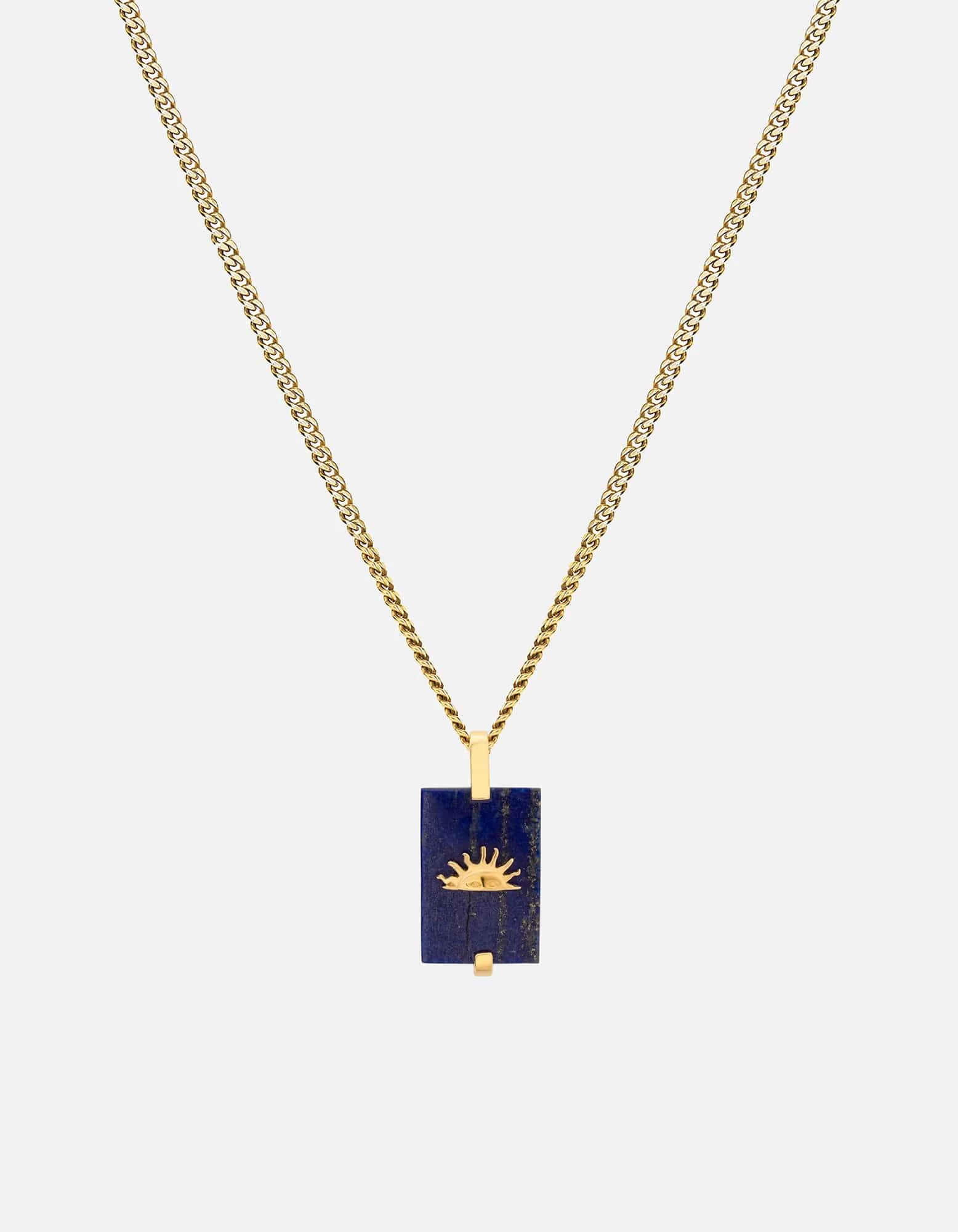 Rise and shine with the Sol Lapis Pendant Necklace, an energizing charm that features the face of a sun in gold vermeil against a blue lapis rectangular pendant. Start your day with the Sol Pendant, and inspire good thoughts from there.