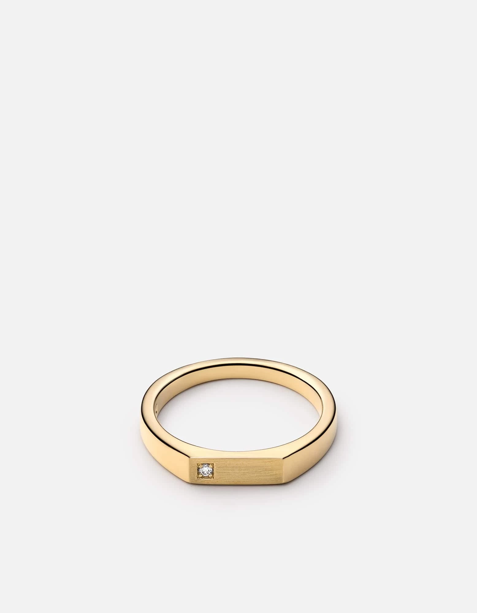 Our men’s Thin Geo Diamond Ring is a reimagined look at traditional shapes, highlighted by a reworked circular signet style that’s fresh and contemporary. This sleek, low-key design was made with the modern minimalist in mind. Available in gold vermeil or 14k gold and enhanced with a diamond.