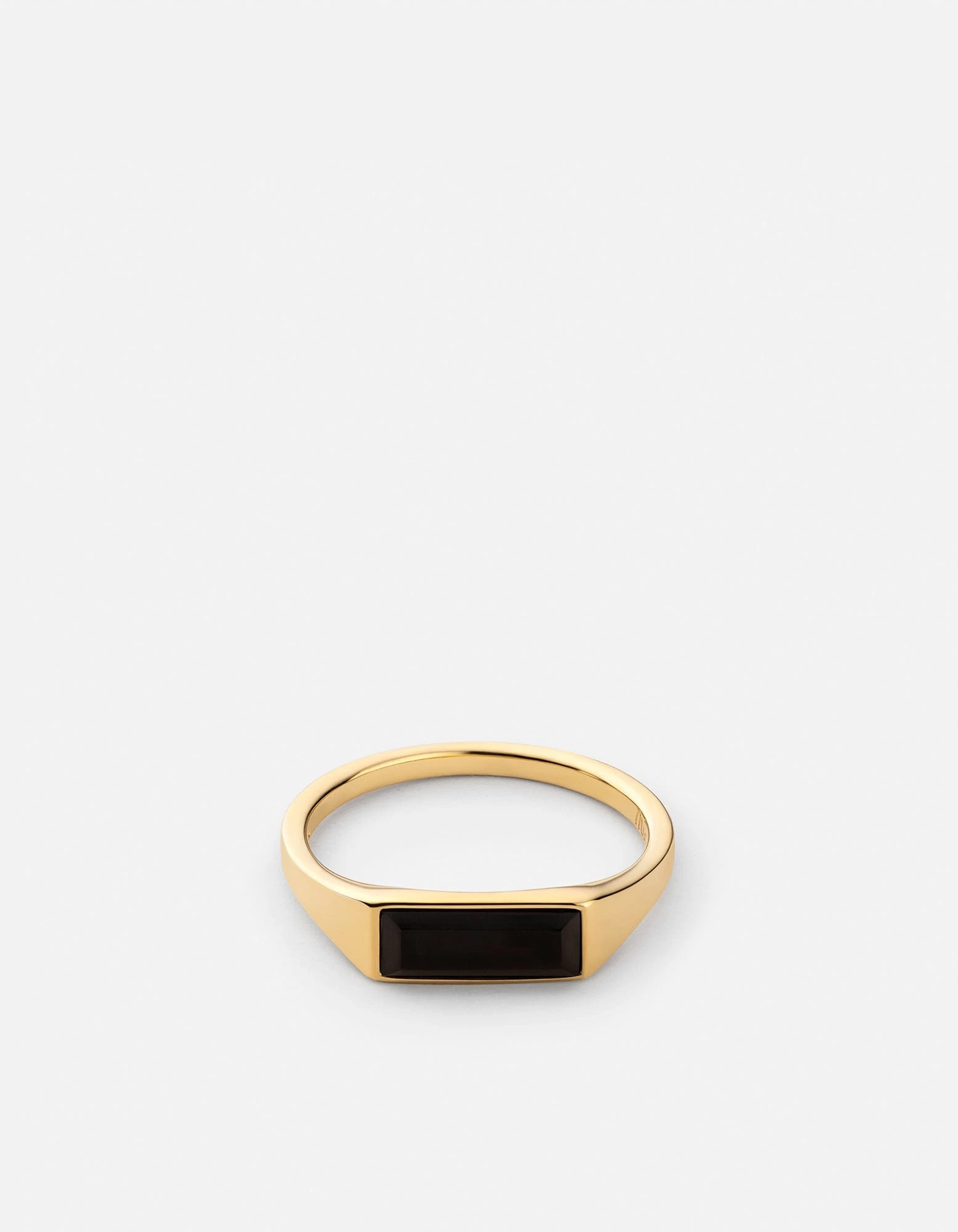 We’ve slimmed down our bestselling Lennox Onyx Ring to create a slighter profile while still keeping its subtle ’70s vibe. Set in a gold vermeil band, the rectangular onyx stone is highlighted against the surrounding flat lines of the ring. Handcrafted by our expert artisans, this ring will add a cool nostalgic feel to enhance an everyday look.