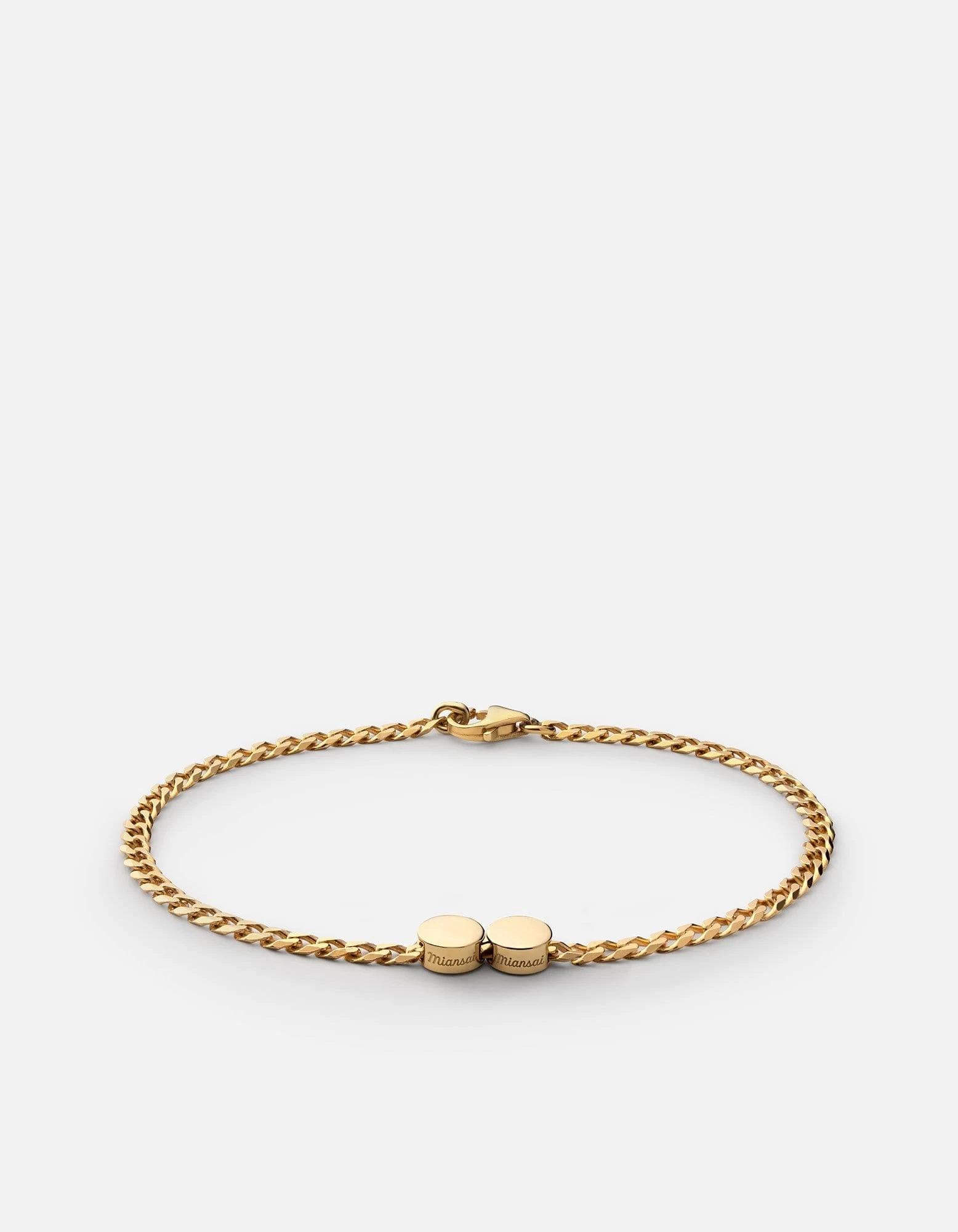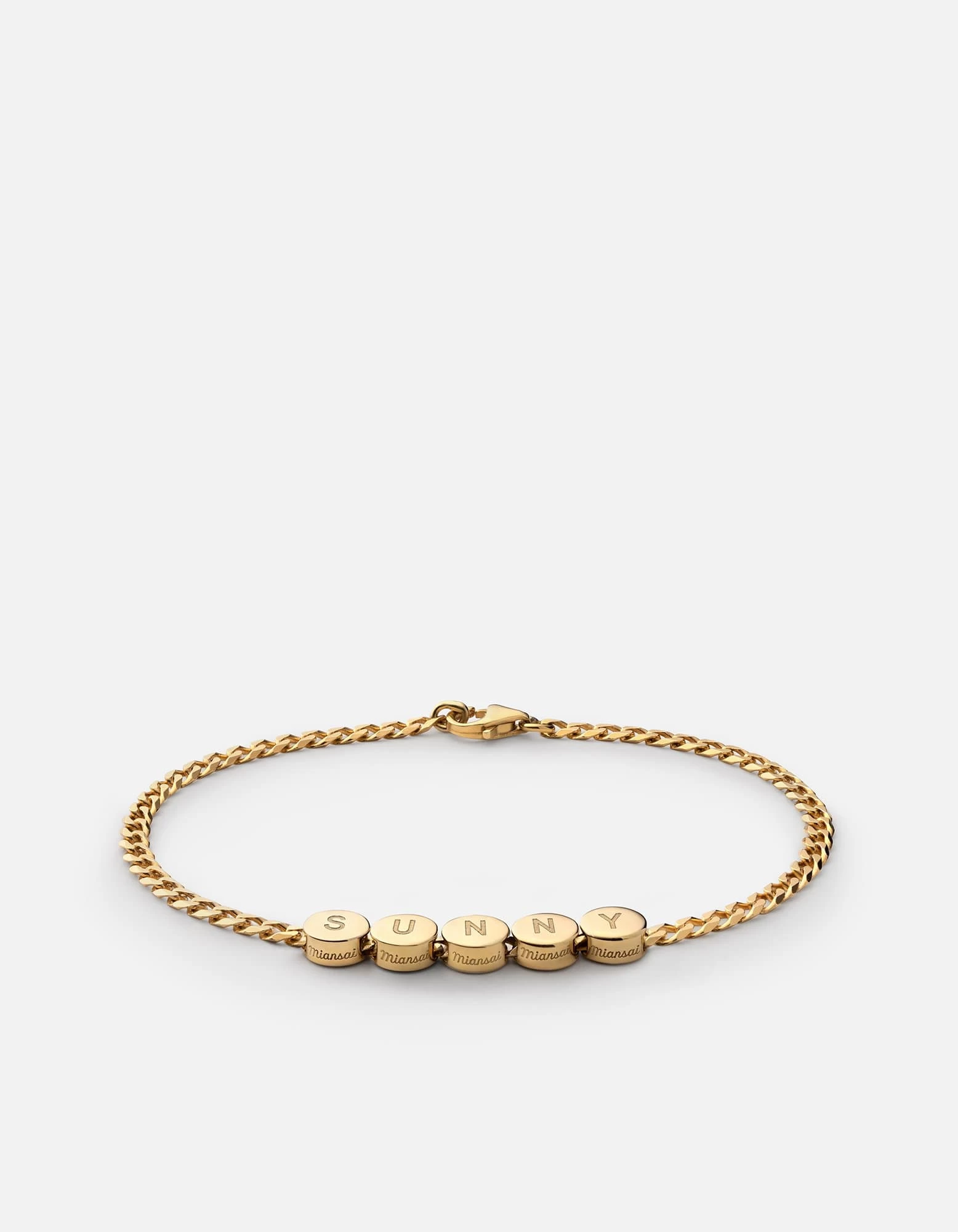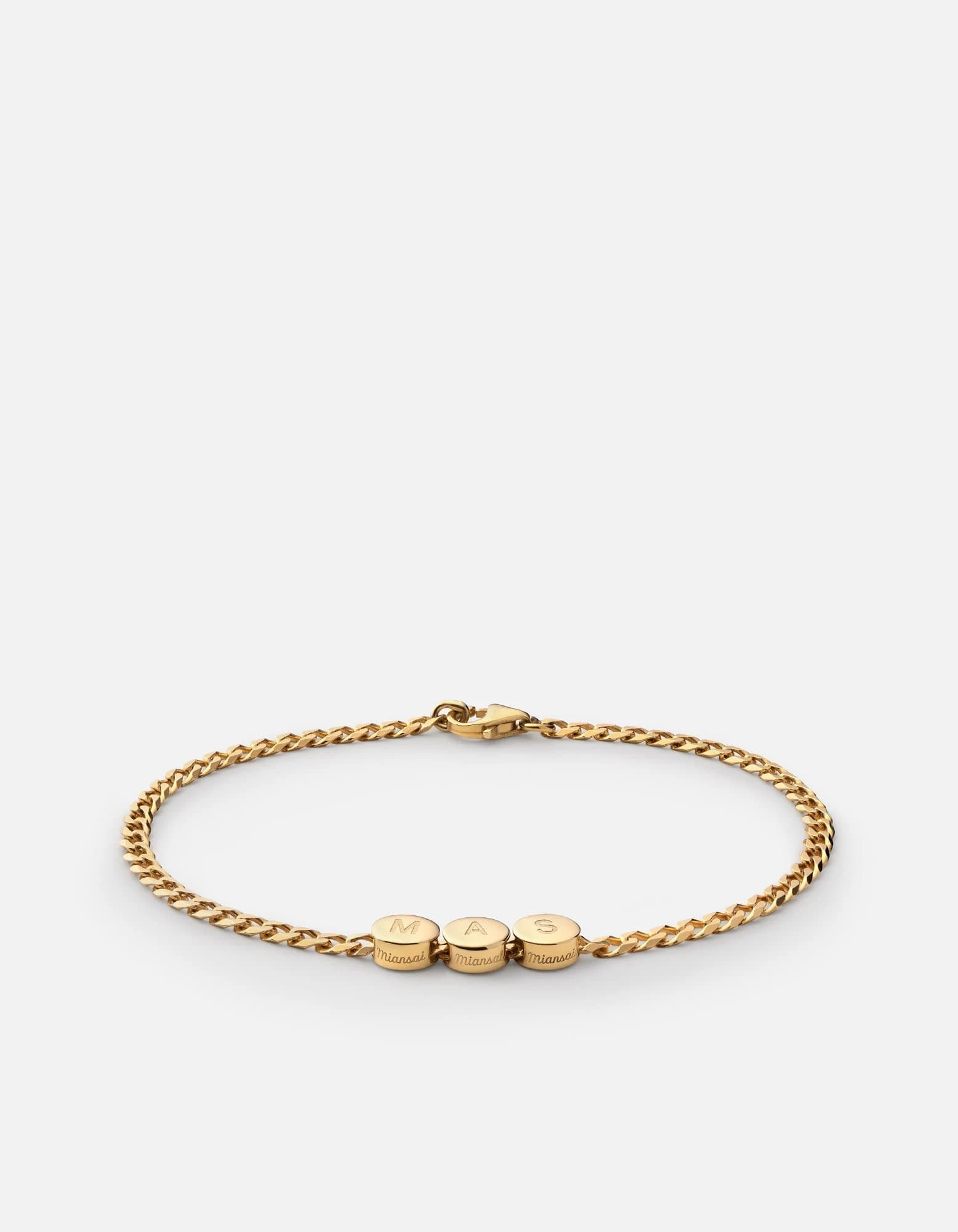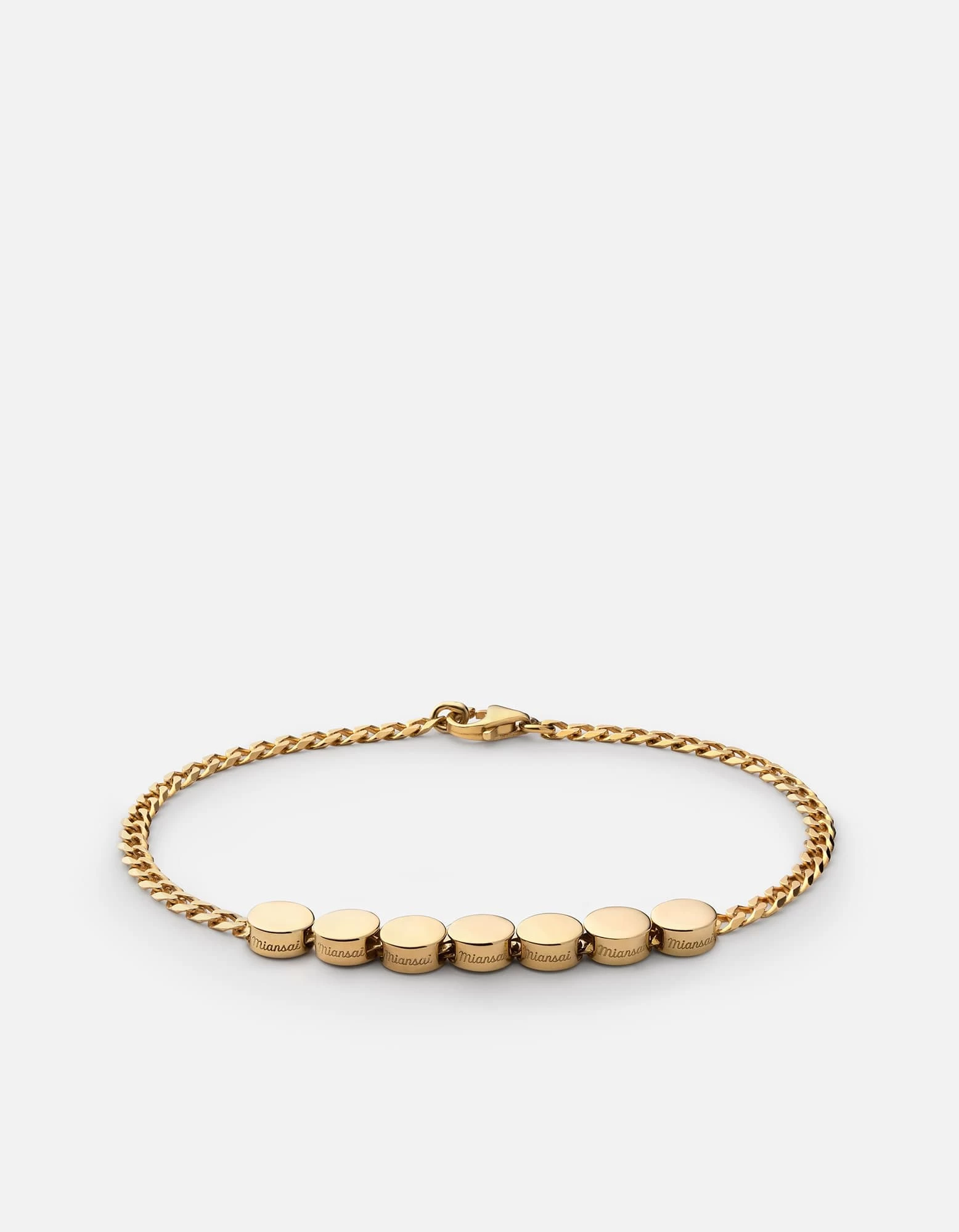 The Type Chain Bracelet made in polished gold vermeil features a curb chain with flat edges. We took the iconic chain bracelet and added modernized personalization to suit you. Customizable with 9 beads. Available for men and women.