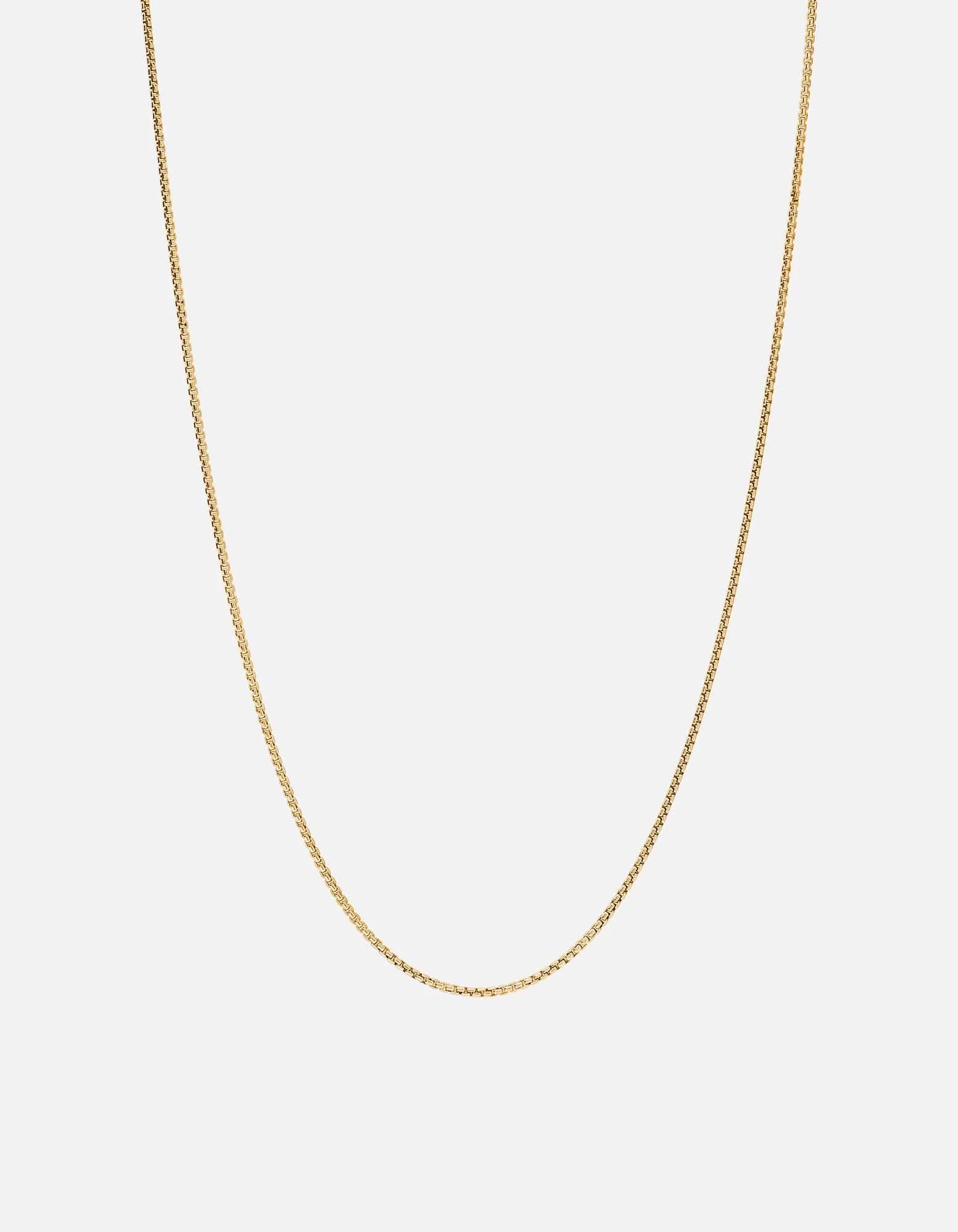 The men’s Venetian Chain Necklace was crafted using 14k yellow gold gold box links fastened to a hardware inspired closure. Hangs on a 24-inch chain. A statement in minimalism, this necklace is set to be your next go-to staple