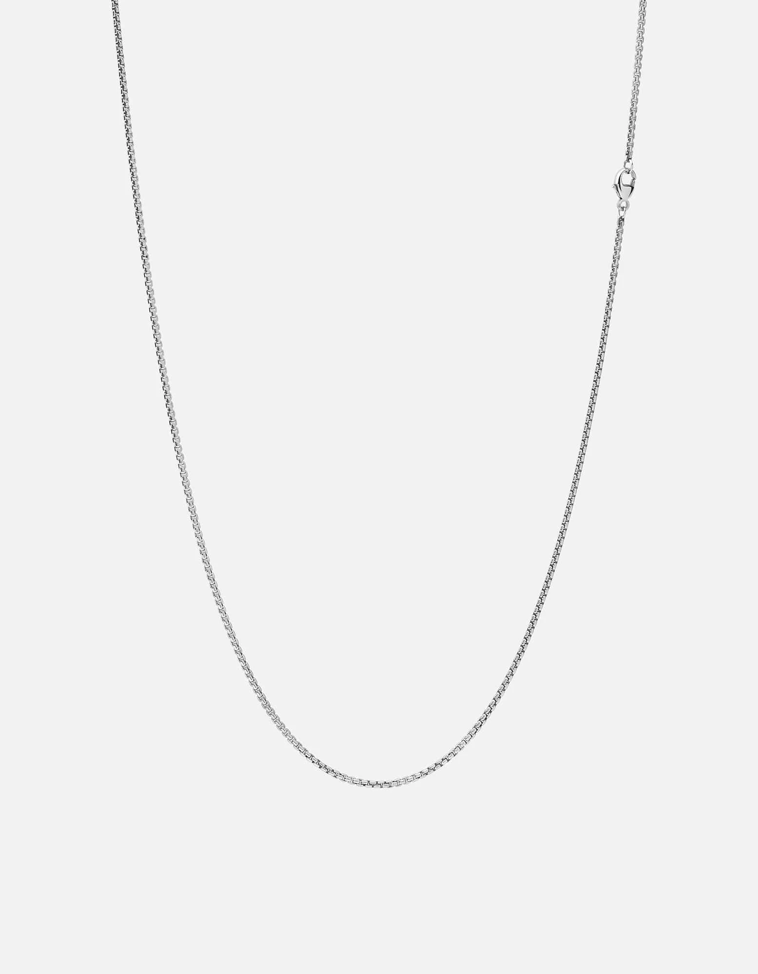 The Venetian Chain Necklace is thoughtfully crafted with a 24-inch sterling silver box link chain. This classic style can be worn alone or layered with one of our other necklaces.